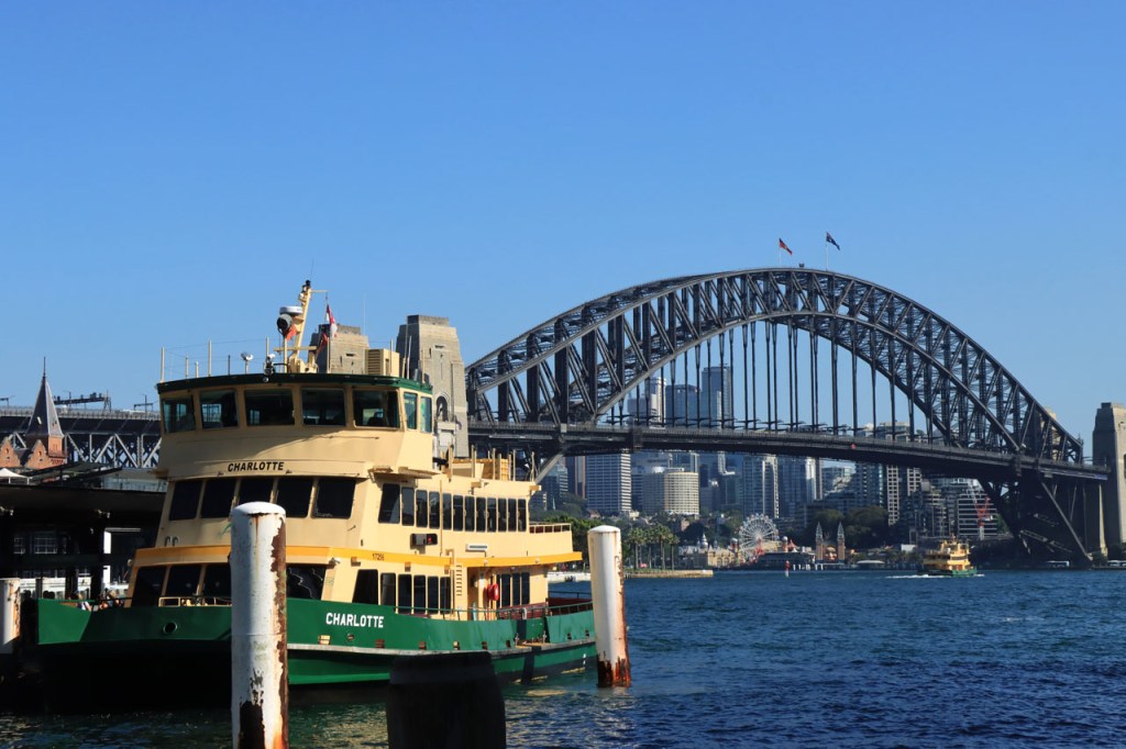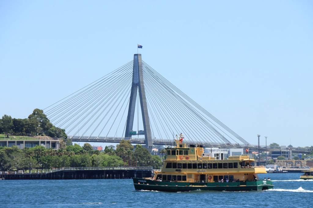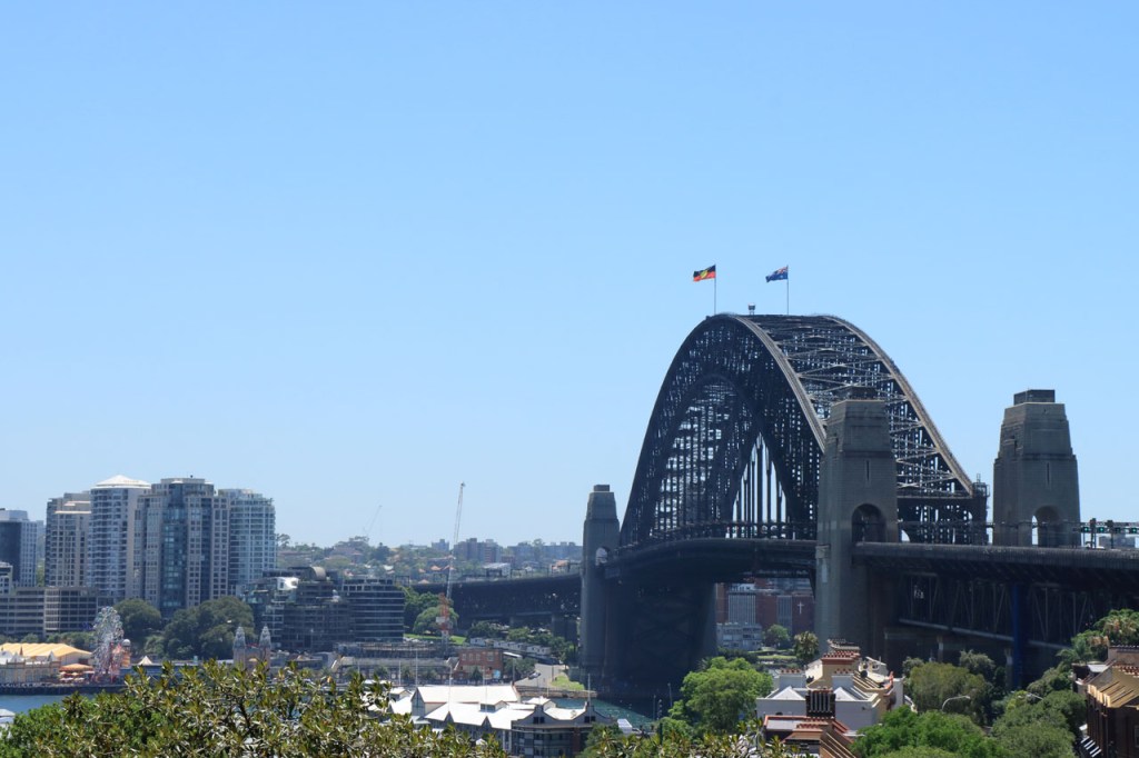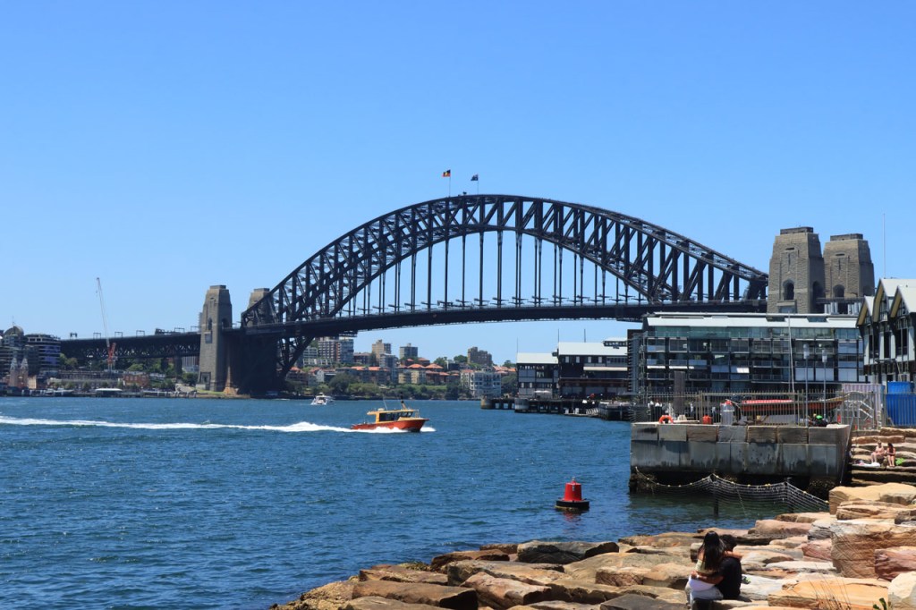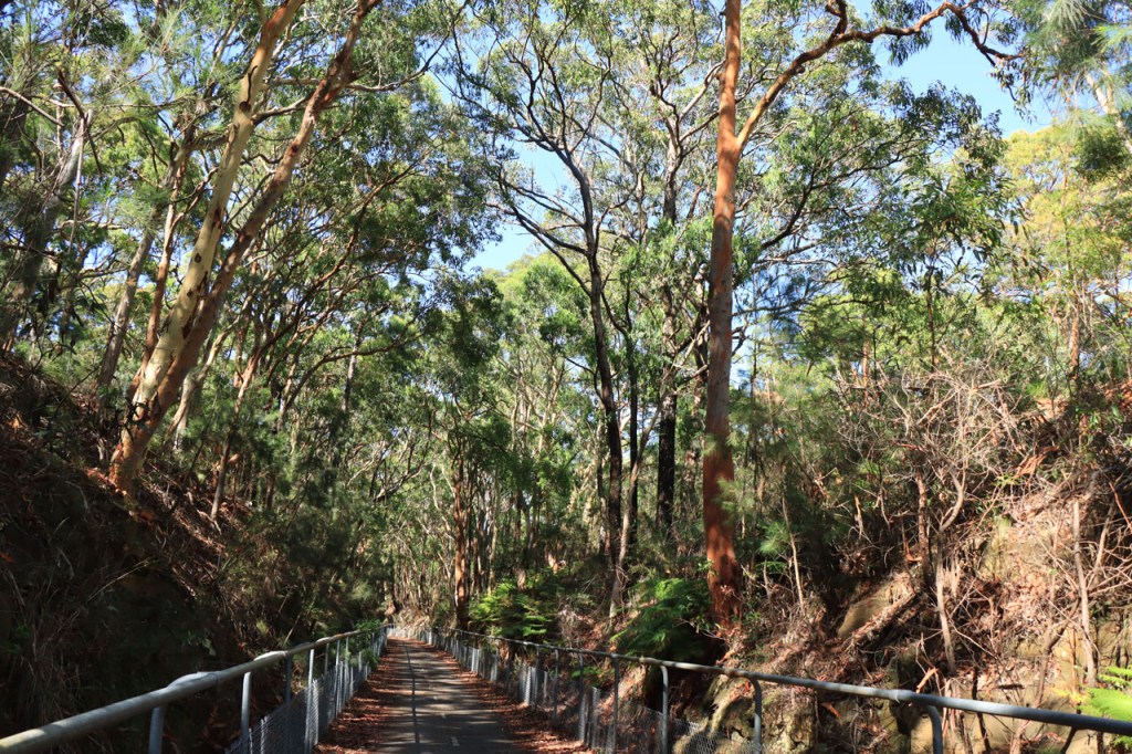 Voor de veranderlijkheid begon de dag mooi blauw. Kort na mijn vertrek werd het echter al snel weer grijs, met een lichte neiging tot vochtigheid, om een eind verder al even snel weer mooi blauw te worden. De rit van vandaag verliep in 2 etappes, onderbroken door een voetgangers/fietsers ferry. Bij de tweede etappe zou ik al vlug in de Sydney agglomeratie komen en daar had ik dus een GPS route voor gemaakt, tot aan de Harbour Bridge want routeyou wou me niet over de brug laten fietsen. Routeyou weet overigens ook niet dat er in Australië links gereden wordt, mijn Gps route liep altijd langs de andere kant van de weg 😦 . Ik reed Sydney centrum dus binnen over de beroemde Harbour Bridge. Het was wel even klauteren om daar op te geraken, er wordt gewerkt aan een fietsramp maar die zal pas in 2025 klaar zijn. Fietsers en wandelaars hebben overigens elk hun zijde van de brug, de wandelaars mogen langs de Opera kant. Aan de overkant hielp het dat ik al enige voorkennis had maar toch liep het nog een beetje mis. Daarmee zit het fietsen er dus op en ik moet eerlijk zeggen, het mocht ook wel stilaan. Het voortdurende klimmen, met bepakking, in de warmte en schijnbaar telkens weer onder een stralende zon, begon toch wel wat door te wegen.