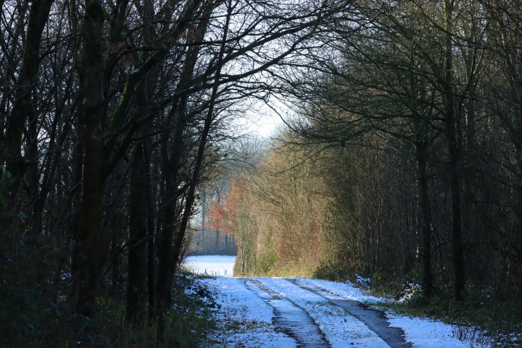 In de voormiddag ging ik wel de straat op om te winkelen maar voor mijn wandeling wachtte ik tot na de middag. Er was op dat moment nog maar weinig te merken van de sneeuw, in de velden lag er natuurlijk nog wel maar op de weg lag er in het algemeen meer water dan sneeuw. Ook in de Gasthuisbossen zijn de paden nogal watergevoelig en dus koos ik in de huidige omstandigheden ook hier voor een verharde route, “propere” routes waren er vandaag sowieso niet 🙂 .