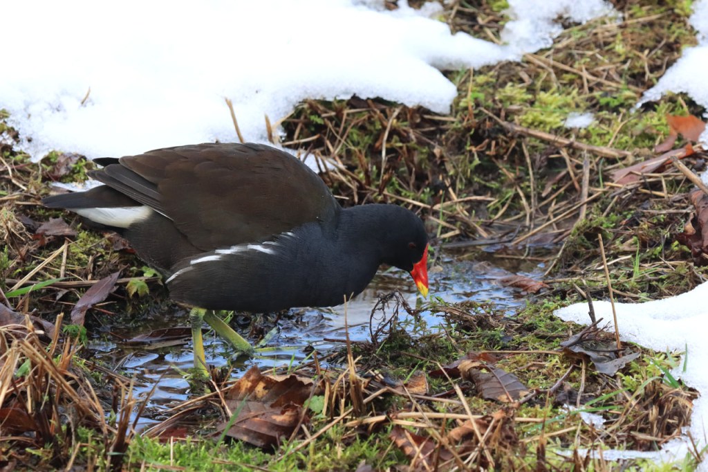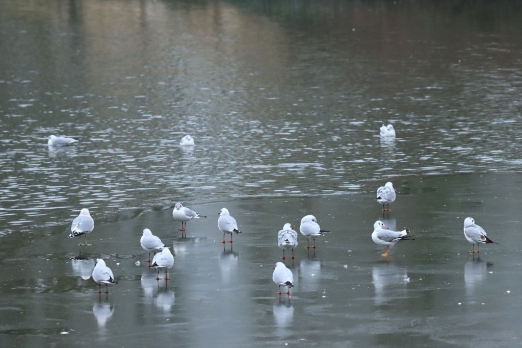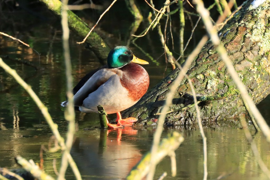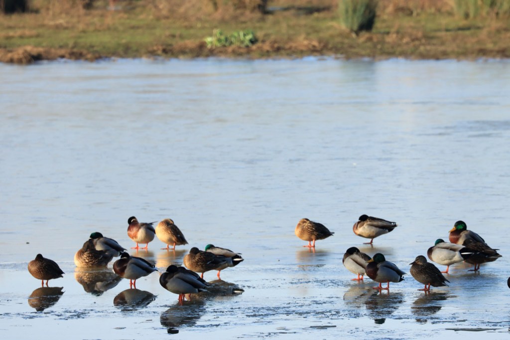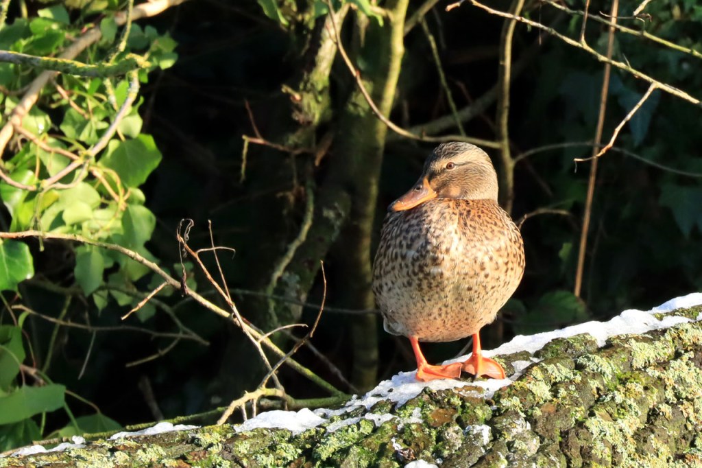 Vandaag ben ik dus toch weer langs de Verdronken Weide terechtgekomen. Ik deed dat terug langs mijn klassieke route. Het was op de weg al een stuk comfortabeler, lees droger, wandelen dan de afgelopen dagen. Langs de Verdronken Weide was het nog wel een beetje schaatsen maar dat was niet meer vanwege ijsvorming, de modder had het terug overgenomen. Het water van de Verdronken Weide is ondertussen vrijwel volledig dichtgevroren. Het worden moeilijke dagen voor de ijsvogels, die open water nodig hebben om te jagen.