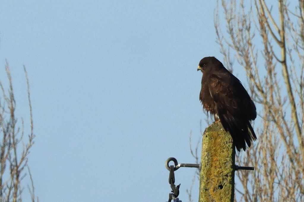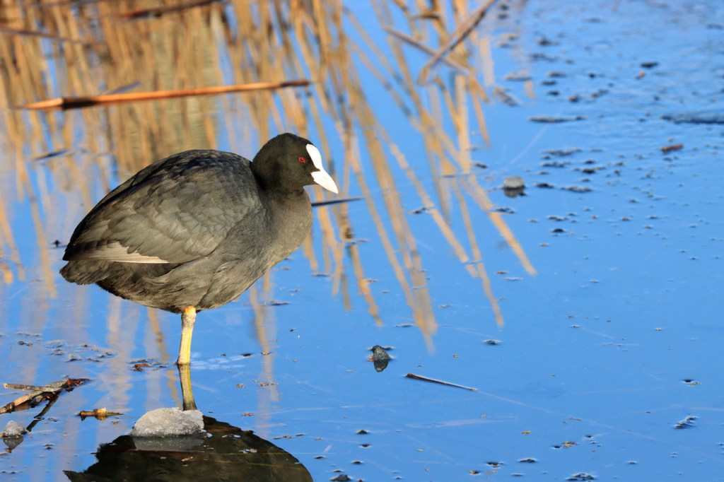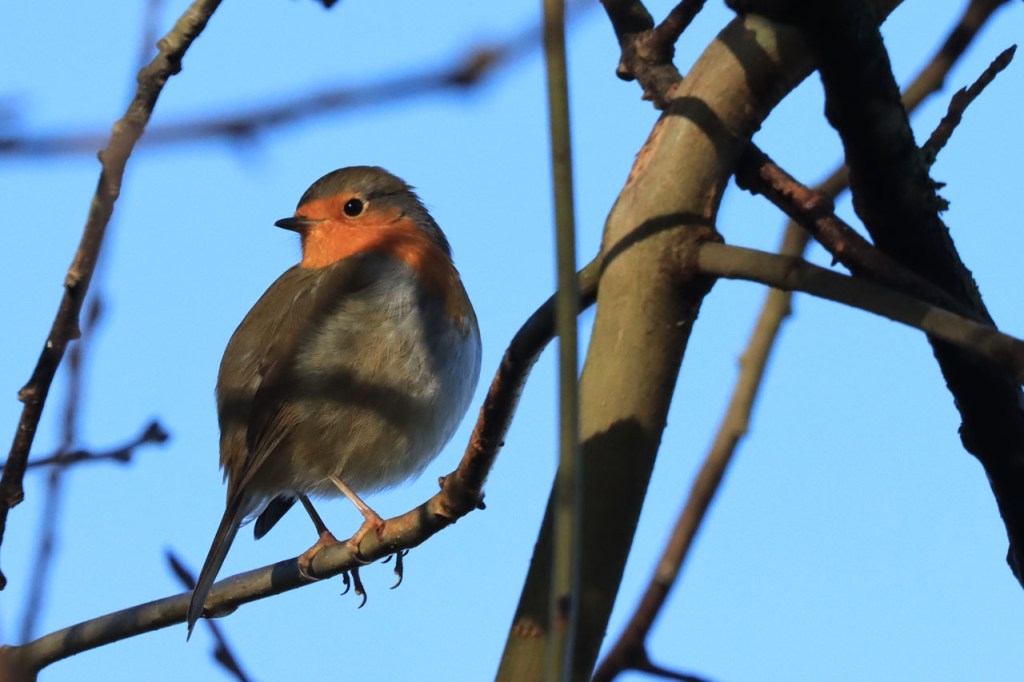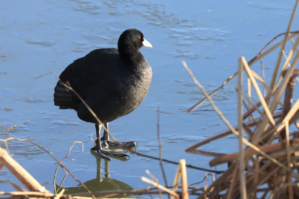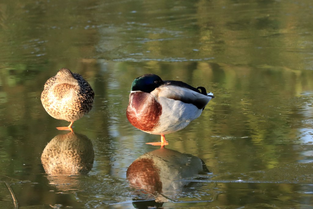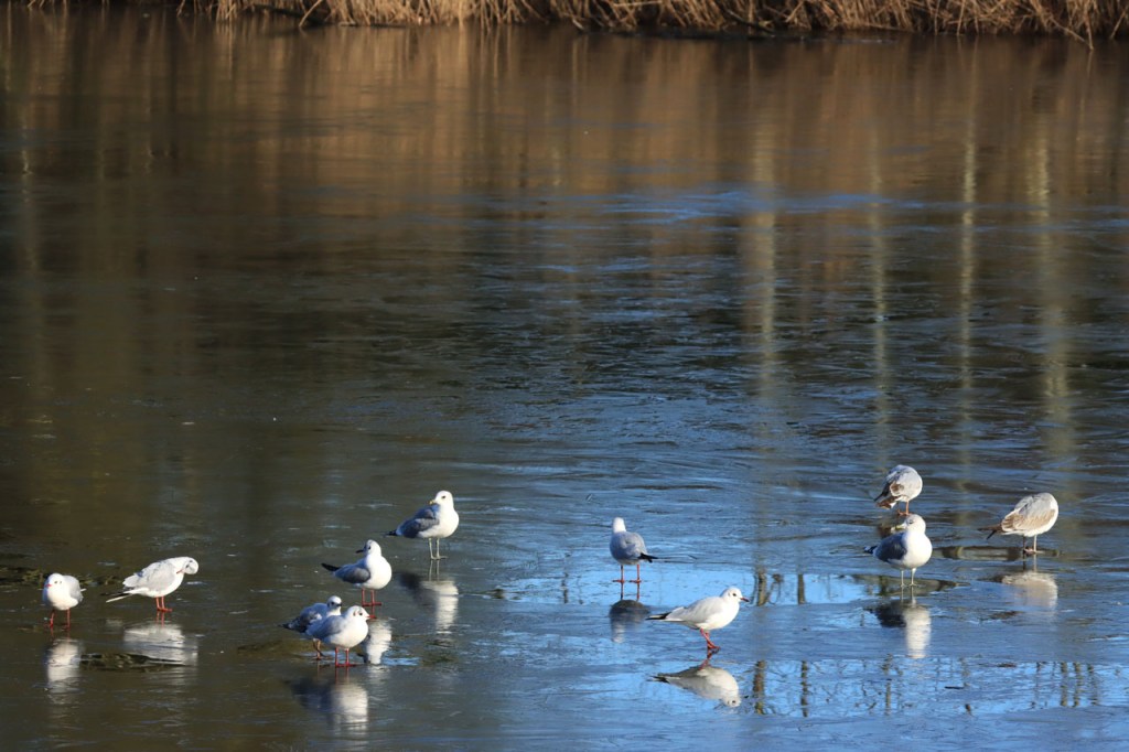 Vandaag ben ik dus toch weer langs de Verdronken Weide terechtgekomen. Ik deed dat terug langs mijn klassieke route. Het was op de weg al een stuk comfortabeler, lees droger, wandelen dan de afgelopen dagen. Langs de Verdronken Weide was het nog wel een beetje schaatsen maar dat was niet meer vanwege ijsvorming, de modder had het terug overgenomen. Het water van de Verdronken Weide is ondertussen vrijwel volledig dichtgevroren. Het worden moeilijke dagen voor de ijsvogels, die open water nodig hebben om te jagen.