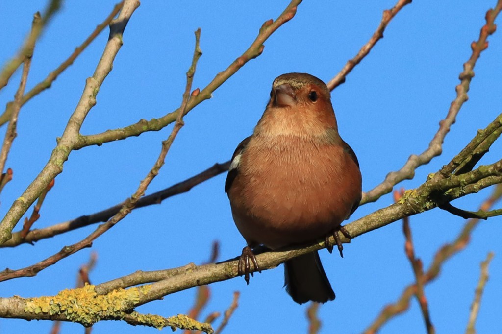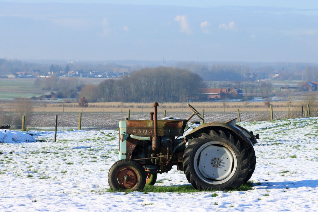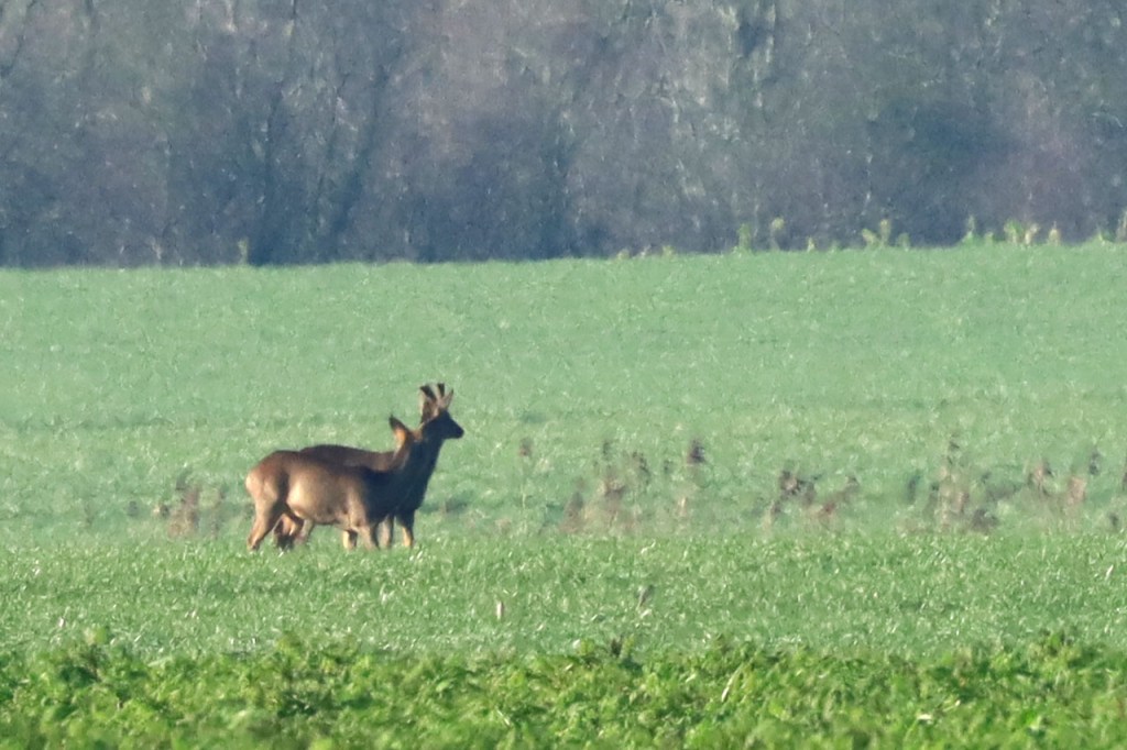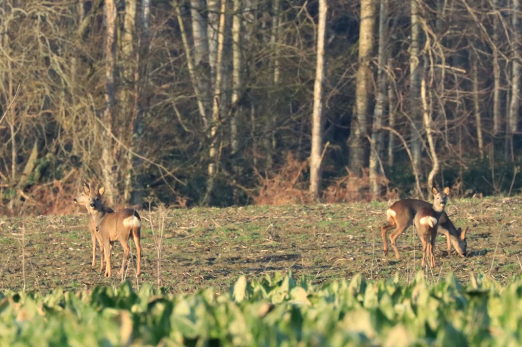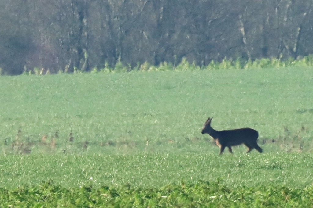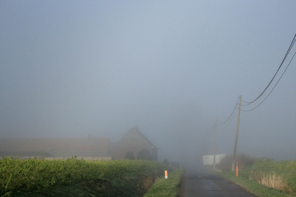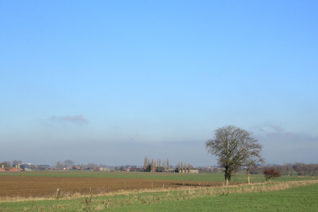 Ondanks mijn pessimistische bericht van gisteren ben ik vandaag toch op de fiets geraakt, het klaarde tegen de middag mooi op. In de omgeving van Stavele hing er wel plots weer mist, ik heb dan maar het hoekje langs het centrum afgesneden. Tegen het einde was het niet de mist die weer kwam opzetten maar wel de bewolking. Ik mocht gelukkig net op tijd afslaan om niet echt naar het donkere te moeten rijden. Ik kon onderweg vaststellen dat de wegen dikwijls wel vochtig en vettig lagen, er worden in de Westhoek veel wintergroenten geteeld en dus momenteel geoogst. Als we, zoals voorspeld, weer nachtvorst krijgen dan zal het voorlopig allicht bij dit ene ritje blijven. Ik geloof dat het de eerste keer was dat ik een fazant in een boom zag zitten. De reeën trof ik vandaag eerder onverwacht, in het midden van nergens. Ze stonden wel behoorlijk ver, de kwaliteit van de foto’s is dan ook in verhouding.