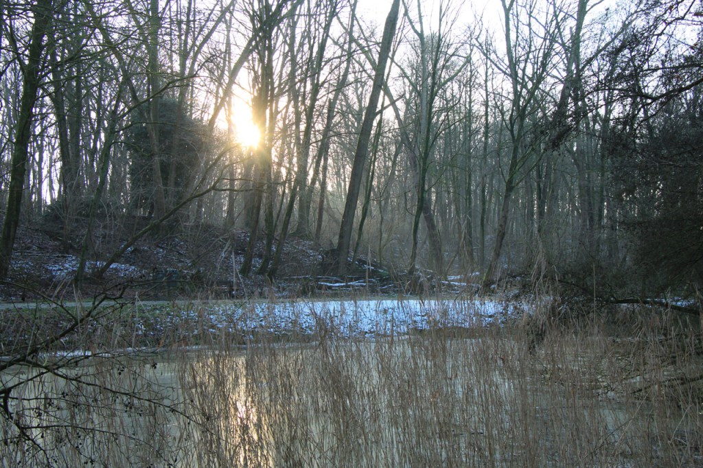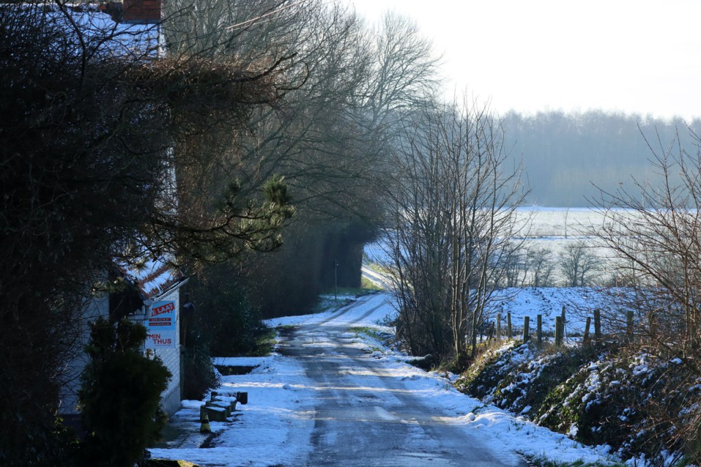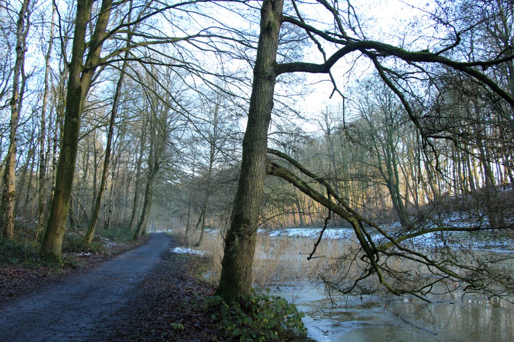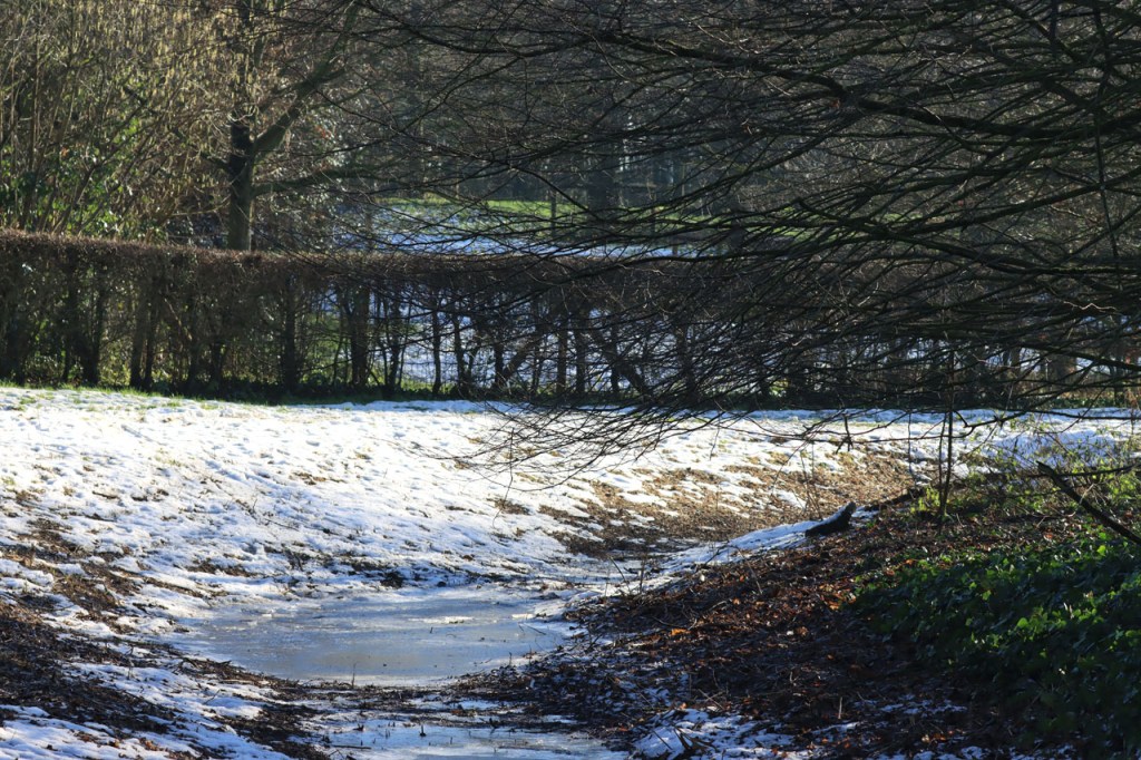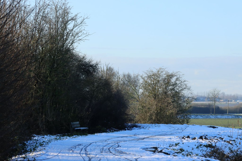 Na de 16 Km van gisteren mocht het vandaag weer wat minder zijn en dan kom ik bijna automatisch weer bij de Verdronken Weide terecht. Ik nam vandaag wel nog eens een wat alternatieve route. Op mijn normale aanloop liggen een paar punten waarop ik bij potentiële gladheid weinig vertrouwen heb en potentiële gladheid was er wel degelijk nog. Vroeger hield ik dan toch, met de nodige voorzichtigheid, die klassieke route aan maar tegenwoordig zal ik toch al eens makkelijker naar een alternatief grijpen.