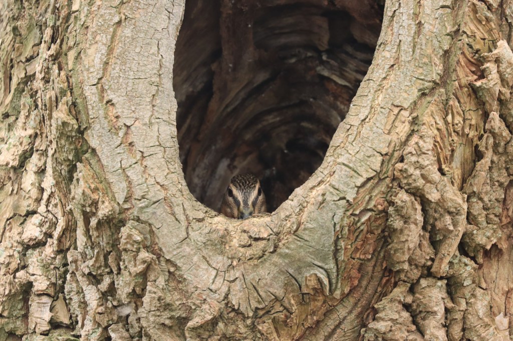 Ik zag schijnbaar een eend in een boom, letterlijk er in dus en niet er op, maar ik heb geen idee hoe ze daar gekomen is. Het zijn best goede vliegers maar om te landen hebben ze gemiddeld toch wat ruimte nodig en ik geloof niet dat ze langs de stam omhoog gekropen zou zijn.