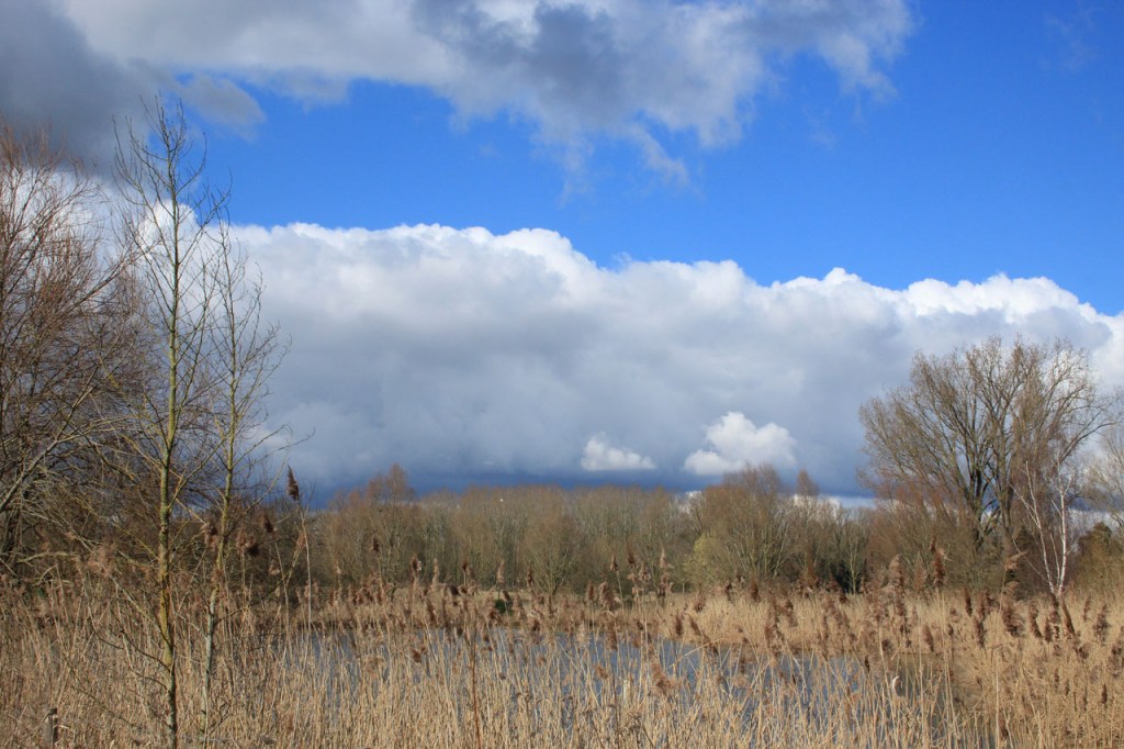 Ik heb er stevig over getwijfeld, het weer was bepaald niet erg geruststellend, maar nam na mijn wandel intermezzo van gisteren toch weer de fiets. Gaandeweg werd het wel beter, vooral minder dreigend, maar de wind bleef snijden, hij is duidelijk gedraaid tegenover een paar dagen geleden.