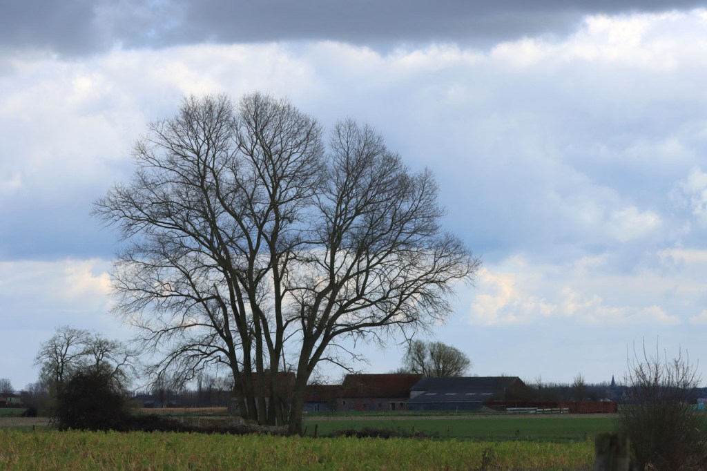 Het weer was vandaag al even twijfelachtig als gisteren maar deze keer sloeg de slinger door in de richting van wandelen. Je hebt eigenlijk zo weinig om je beslissing op te baseren als je, met een camera op de rug, liever niet in de regen fietst. Ik heb 2 weer-apps maar die durven mekaar al eens tegenspreken. Er kwam tijdens de wandeling al wel eens een mooie opklaring maar ook wel erg donkere wolken. Ik werd dus, in Ieper, niet nat maar je weet in deze omstandigheden natuurlijk nooit hoe het een beetje verder is, het lijkt me dus nog altijd dat de wandeling de betere optie was.