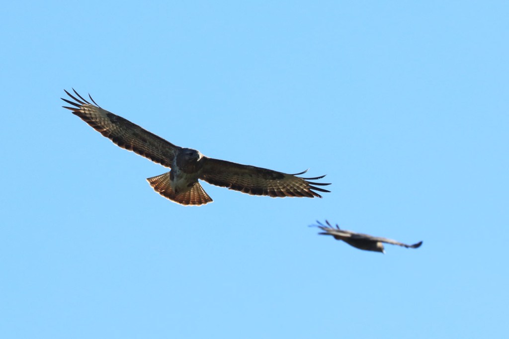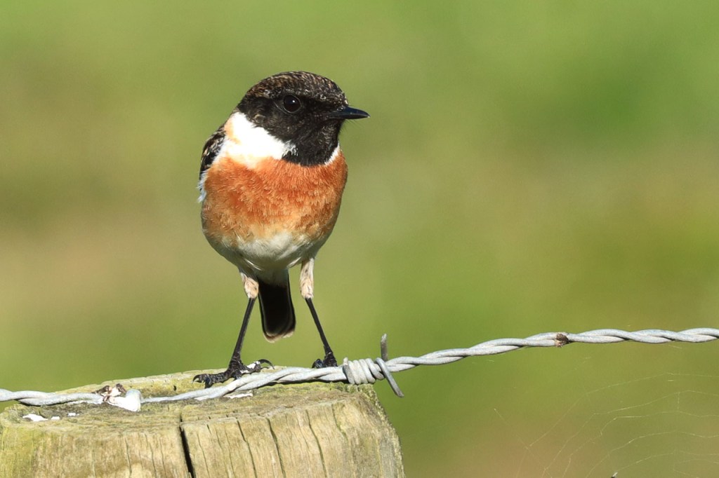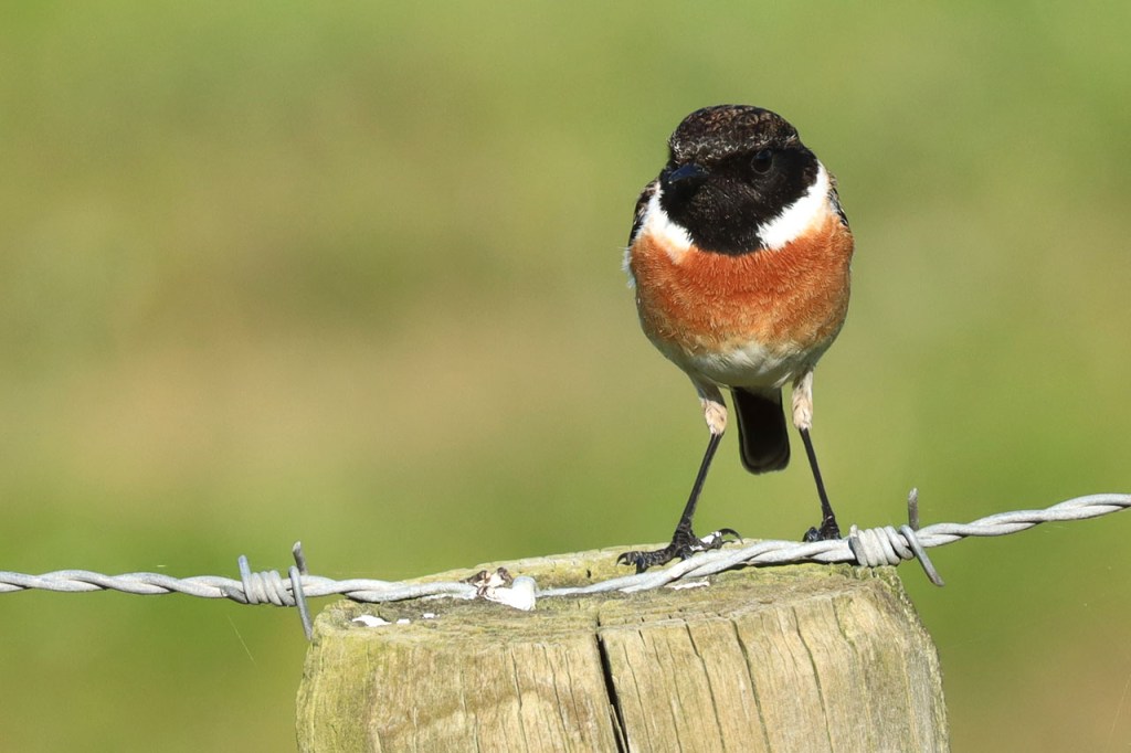 Kleine vogels zijn met de fiets vrijwel niet te doen. Tegen dat je gestopt en uitgepakt bent, zijn meestal al verdwenen. Eén van de uitzonderingen daarop is de roodborsttapuit, een mooi klein vogeltje dat wel eens rustig op zijn paal of struik durft te blijven zitten. Vandaag kreeg ik er tegelijkertijd nog een, naar ik vermoed, lijster als bonus bij.