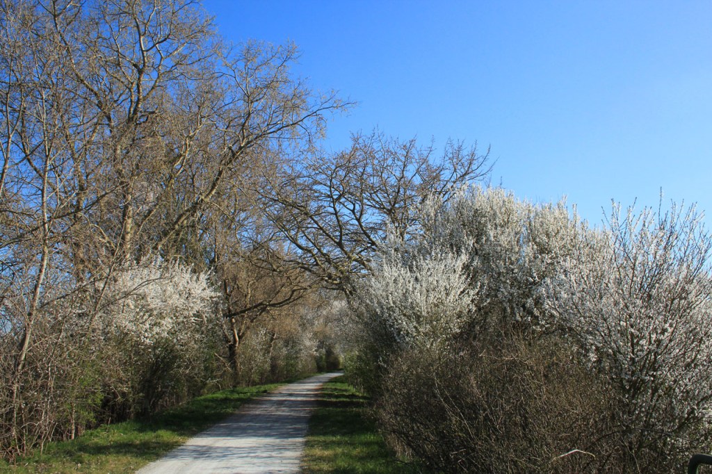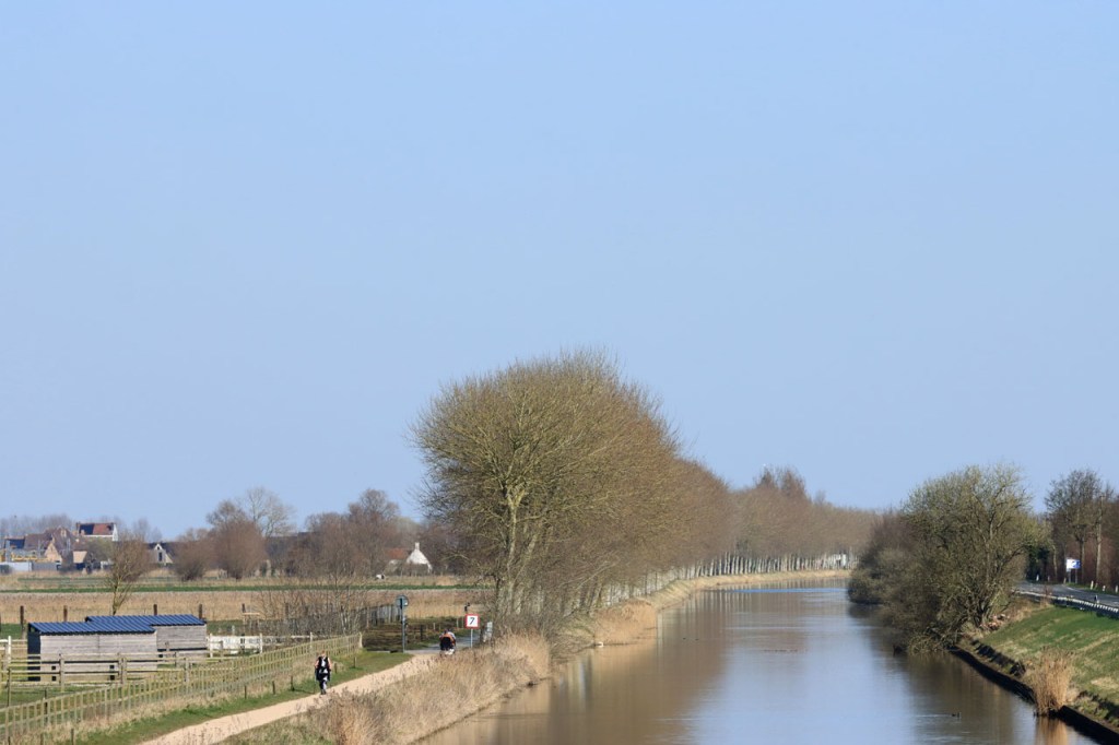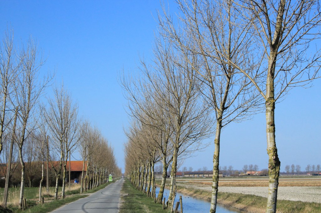 Een stralend blauwe hemel en dus fietsweer vandaag, al bleek de wind wel terug een stuk strakker dan gisteren. Je zou kunnen denken dat ik die wind alleen zo voel wanneer ik fiets, wat misschien wel een beetje bijdraagt, maar je merkte het ook aan de omgeving, aan de takken en de vlaggen.