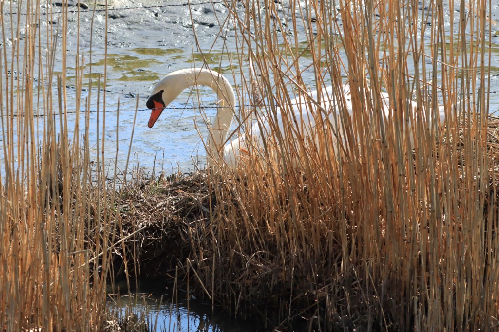 Een paar jaar geleden zag ik op het stukje richting Adinkerke een paar zwanen op een nest dat, naar mijn mening, later geroofd werd. Het weerhoudt de zwanen er schijnbaar niet van om nog steeds op diezelfde plaats te nesten.