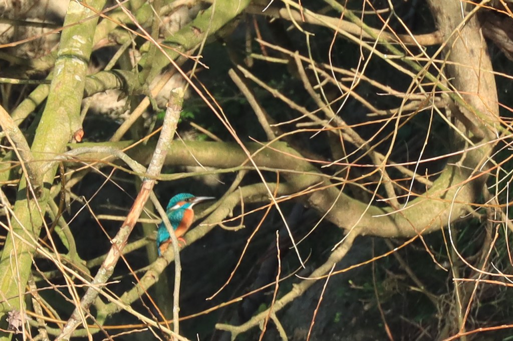 De ijsvogel zag ik vandaag langs de IJzer, zowat halfweg tussen Diksmuide en Knokkebrug. Ik zag er sporadisch al wel eens eerder, dichter bij Diksmuide, maar kreeg er daar nog geen in beeld. Ook vandaag moest ik voldoende afstand laten om te voorkomen dat hij weer op zou vliegen.