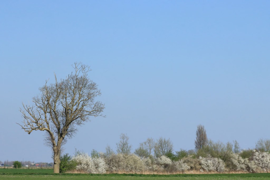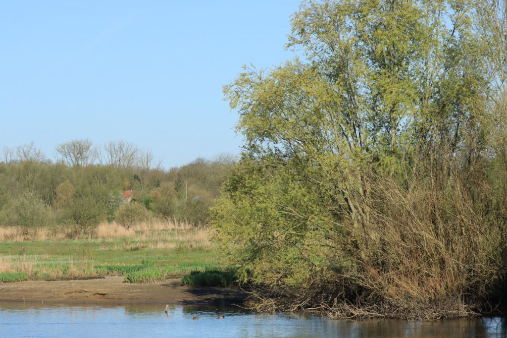 Ik besloot om vandaag, met de weer best stevige wind, niet te ver te fietsen maar ik nam hem wel om nog eens op verplaatsing te wandelen. Het was al even geleden dat ik nog eens in de Blankaart wandelde. Het was de bedoeling om gewoon de Blankaart wandeling te doen maar het liep even anders. Ik zag het bekendste paar broedende vogels van België maar van ver en met tegenlicht. Er was ook nog een kijkpunt aan de andere kant, dichterbij en met de zon van achter, maar daar had ik wat minder geluk, ik zag er maar net een kopje boven de rand uitsteken. Ik las onlangs in een artikel, in de regionale katern van de krant, dat er ook reeën in de Blankaart zitten maar die kreeg ik in al die jaren nog nooit te zien. Ze blijken er echter toch te zijn, nabij het arendsnest. Het tweede kijkpunt bevindt zich zo’n 750 meter van de normale wandeling, 1,5 Km heen en terug dus. Het werd stilaan wat later en ik moest ook nog terug naar Ieper fietsen, ik koos dus vanaf het kijkpunt de directere route terug in plaats van de wandeling verder te zetten. Zelfs wandelen was lastig tegen de wind.