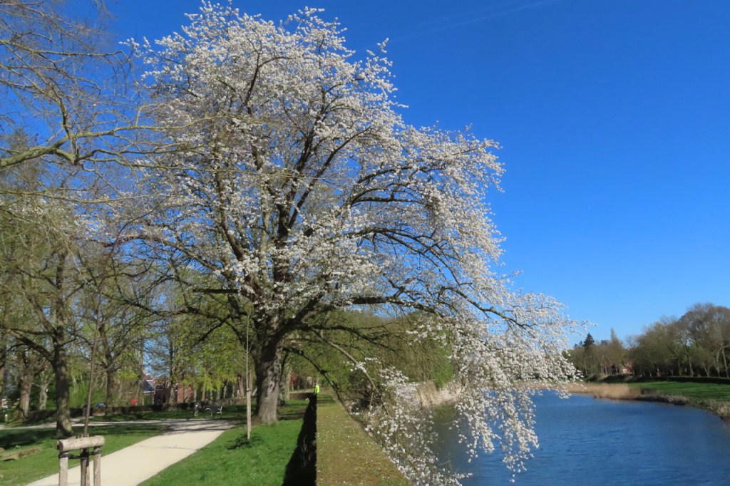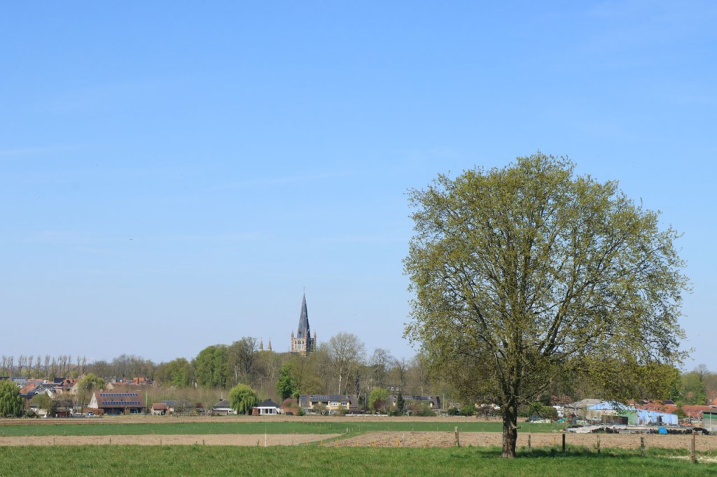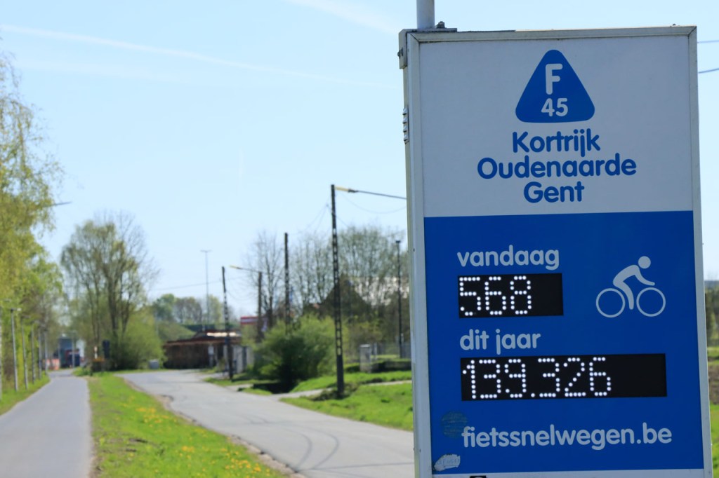 Ik moest dringend nog eens gaan “shoppen” in Gent en gezien het weer deed ik dat liever met de fiets dan met de trein. Dat hield wel een overnachting in Gent in maar in Hostel De Draecke kost een overnachting met ontbijt amper meer dan een treinrit heen en terug Ieper – Gent. Voor de heenweg zou ik voor de route langs de Schelde kiezen, lang geleden dat ik daar nog was. Even twijfelde ik toen ik even voorbij Kortrijk een bord van de F45 route Kortrijk – Oudenaarde – Gent zag, die deed ik nog niet, maar die route is blijkbaar niet bijzonder aangeduid want meer dan dat ene bord zag ik niet. In Oudenaarde kwam ik de borden wel terug tegen, en hier staat ze wel goed aangegeven, maar toen besliste ik om toch maar langs de Schelde te blijven. Ik moest voorheen mijn route overigens al wel enkele keren aanpassen vanwege omleidingen. Er stond vandaag wat minder wind dan de afgelopen dagen en dat was maar best, hij kwam namelijk uit de verkeerde richting. Ik kan de route voorlopig niet tonen, er is een probleempje met de synchronisatie met mijn GPS.