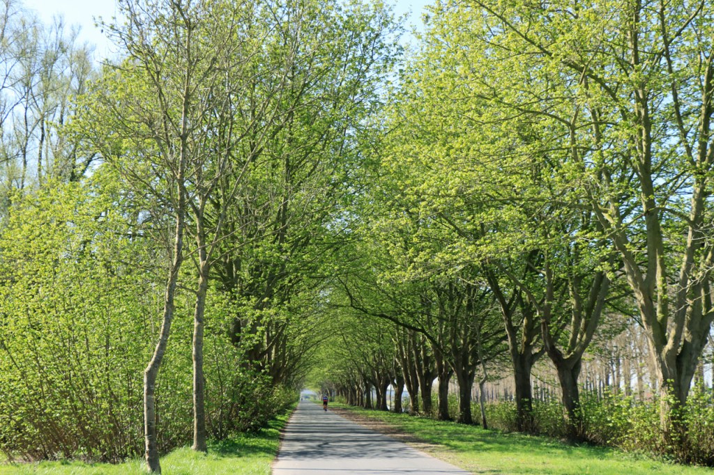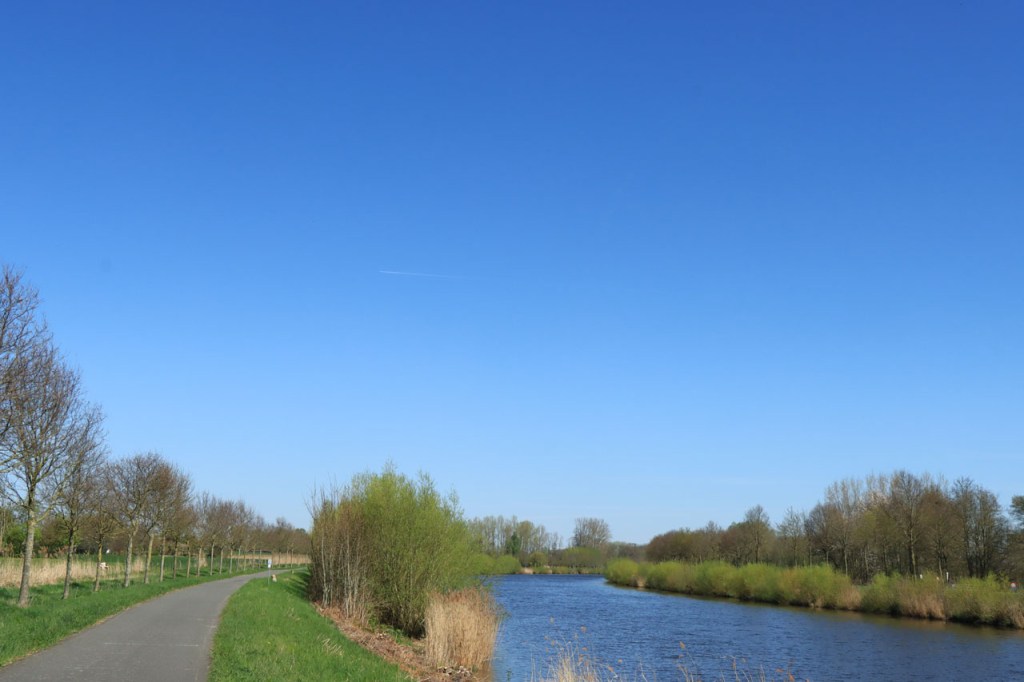 Ik dacht gelezen te hebben dat er vandaag een zwakke wind zou staan, waar ze dat haalden wist ik ook niet. Bij controle, na thuiskomst, bleek het zwak tot matig geweest te zijn. Bij ons zal dat dan wel “matig” geweest zijn en elke amateur fietser weet dat “matig” best stevig is 😉 . Na een uur had ik goed 24 Km op de teller en dat doe ik tegenwoordig niet meer zonder een stevig steuntje in de rug. Dat ik daar op het einde een gemiddelde van nog geen 22 van overhield zegt genoeg wat dat betreft 🙂 .