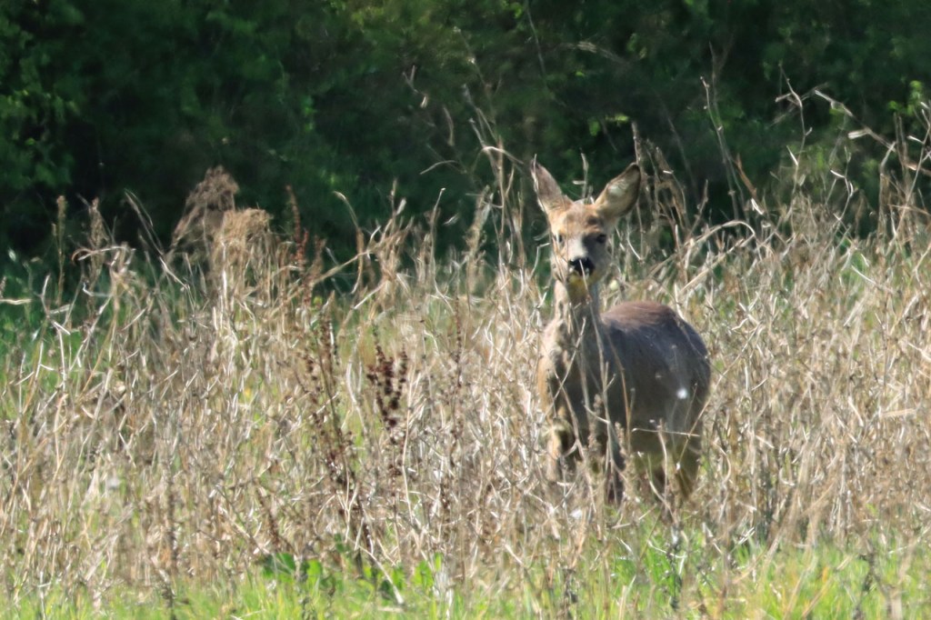 De voormiddag bleef zwaar bewolkt maar na de middag begon de hemel uiteindelijk mooi blauw te kleuren. De wind bleef wel erg frisjes en best stevig. Het hert van vandaag was van de vrije soort, een ree dus. Vlaanderen heeft alleen reeën in het wild ook al zag ik kort na nieuwjaar, in de richting van Jan Yperman, wel een damhert de weg oversteken. Dat moet dus ergens ontsnapt geweest zijn, mogelijk na vuurwerk op nieuwjaarsnacht.