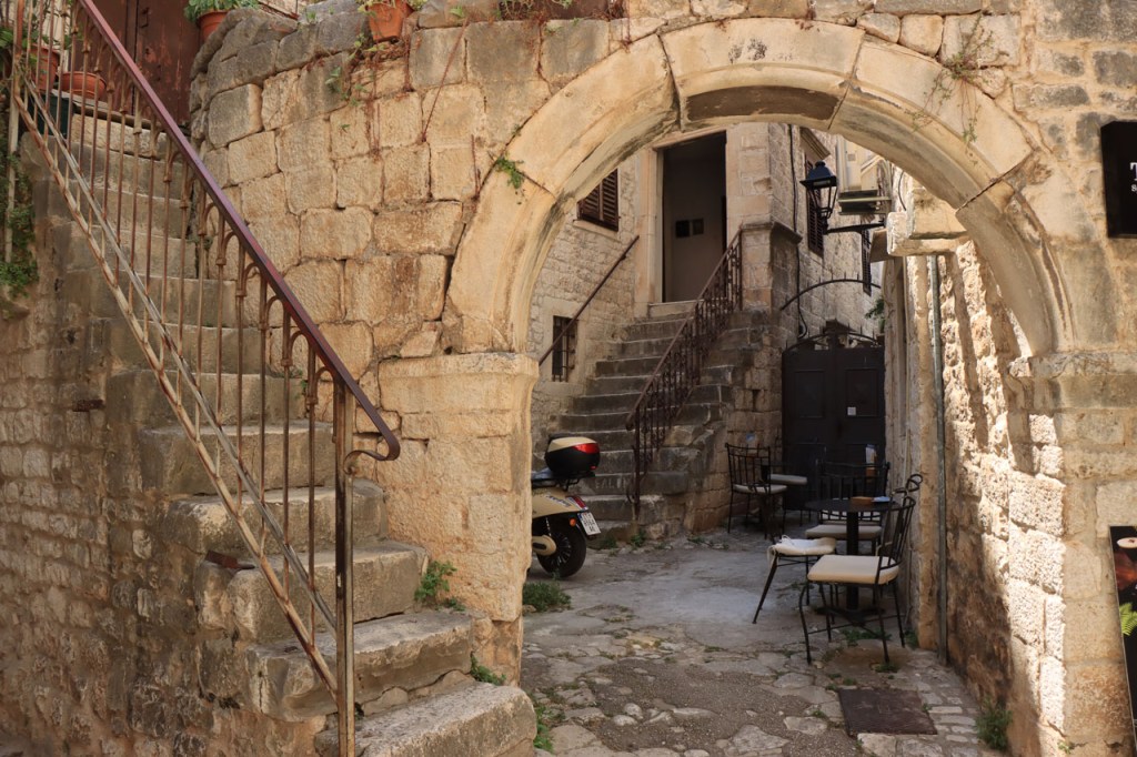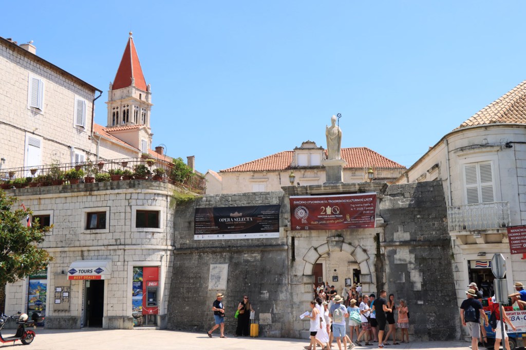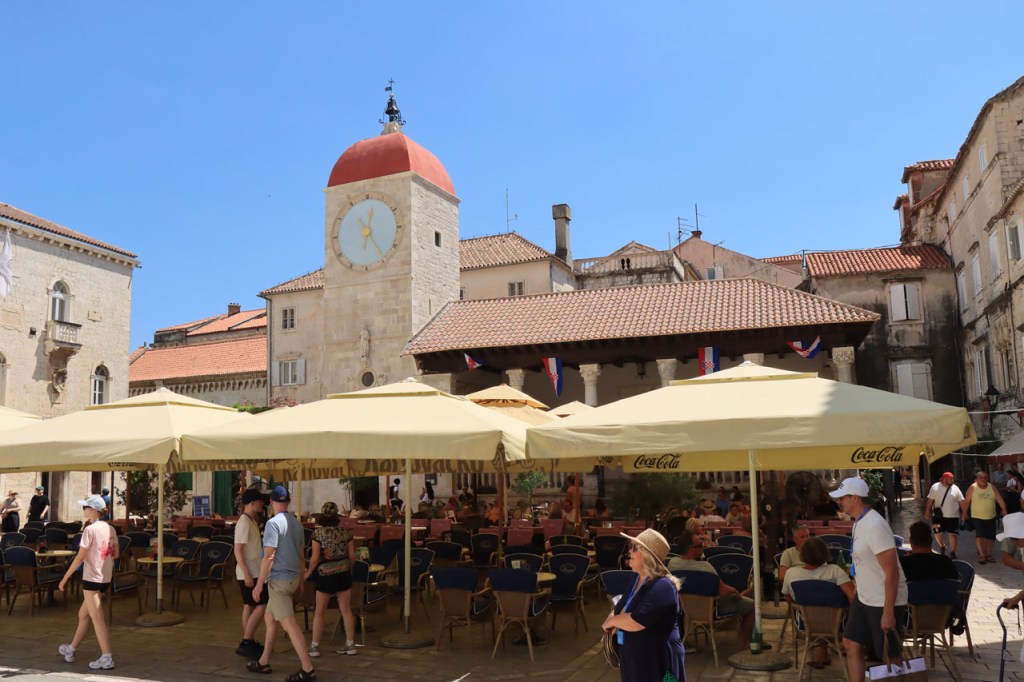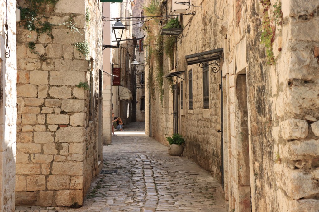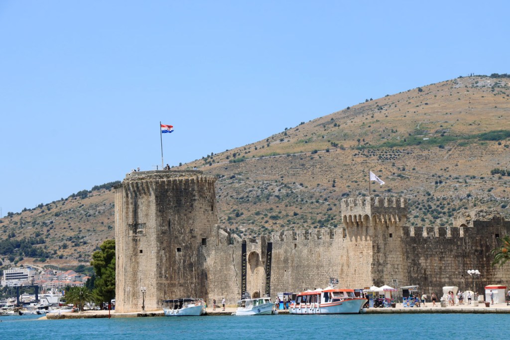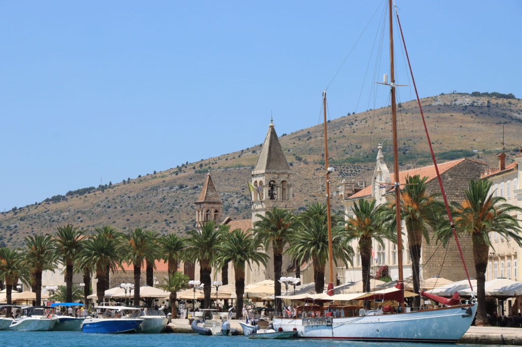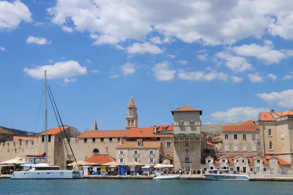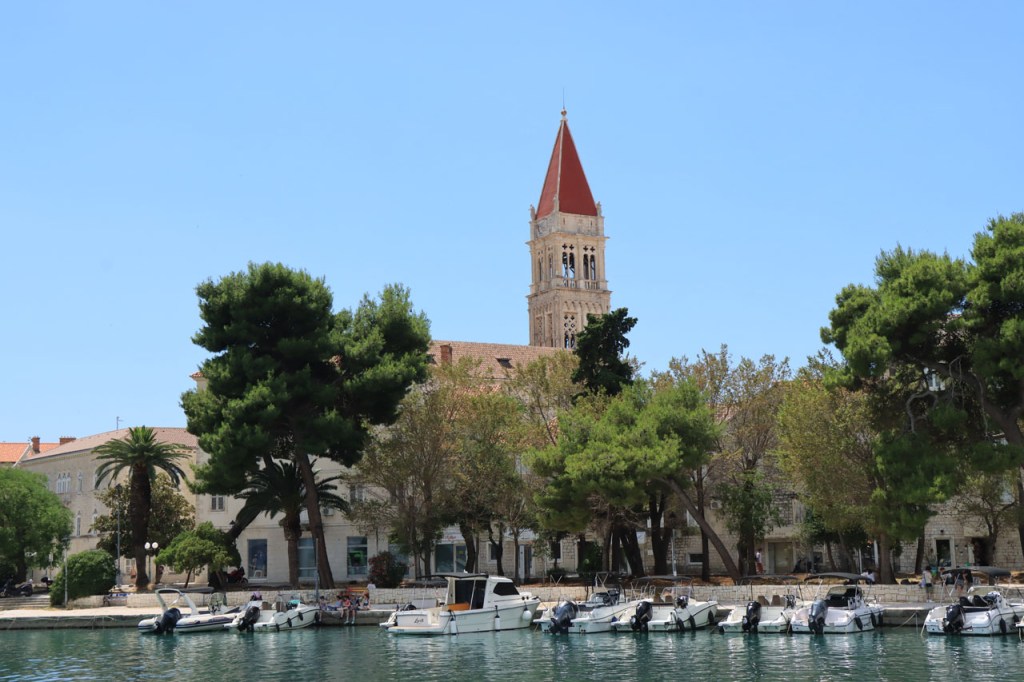 Split lag nog een ietsje verder dan dat ik ingeschat had. Het was een beetje gokken om de juiste route in en uit Split te vinden maar al bij al is het redelijk gelopen zoals ik vooraf in gedachten had. Split was schijnbaar van de Romeinen in plaats van de Venetianen en daar zijn ze blijkbaar trots op. Van Split ging het verder naar Trogir. Ik dacht dat ik van Split naar Trogis een mooie kustweg gevonden had, zo zag het er op kaart toch uit, maar dat bleek een misser te zijn, het was gewoon een eerder slechte en vooral vervelende weg te zijn. Nu, het alternatief was ook niet best, als ik daar al over mocht passeren. Trogir is een historisch stadje op een eilandje tussen het vaste land en een groter eiland. Het is ook één van de toeristische hotspots van Kroatië. Ik ging er eerst op zoek naar de camping om daarna nog even terug te keren naar het stadje. Ik had hier weer een super stevige prijs verwacht maar met 20 € kan ik op deze locatie best leven. Morgen moet ik bij vertrek weer over het eilandje, misschien stop ik nog wel eens even voor wat extra foto’s. Het valt bij al die historische stadjes, al van voor Kroatië, wel op dat blijkbaar alle mogelijke open plaatsen zoveel mogelijk moeten opgevuld worden met terrasjes. Het maakt het leven van de fotograaf er niet makkelijker op en die heeft het al niet zo makkelijk met al die smalle straatjes en moeilijk licht 😉 .