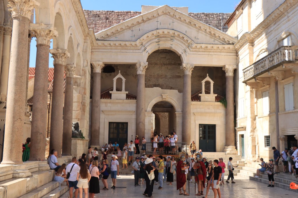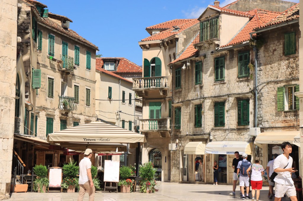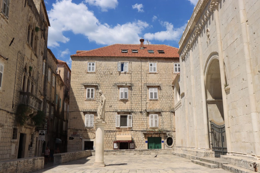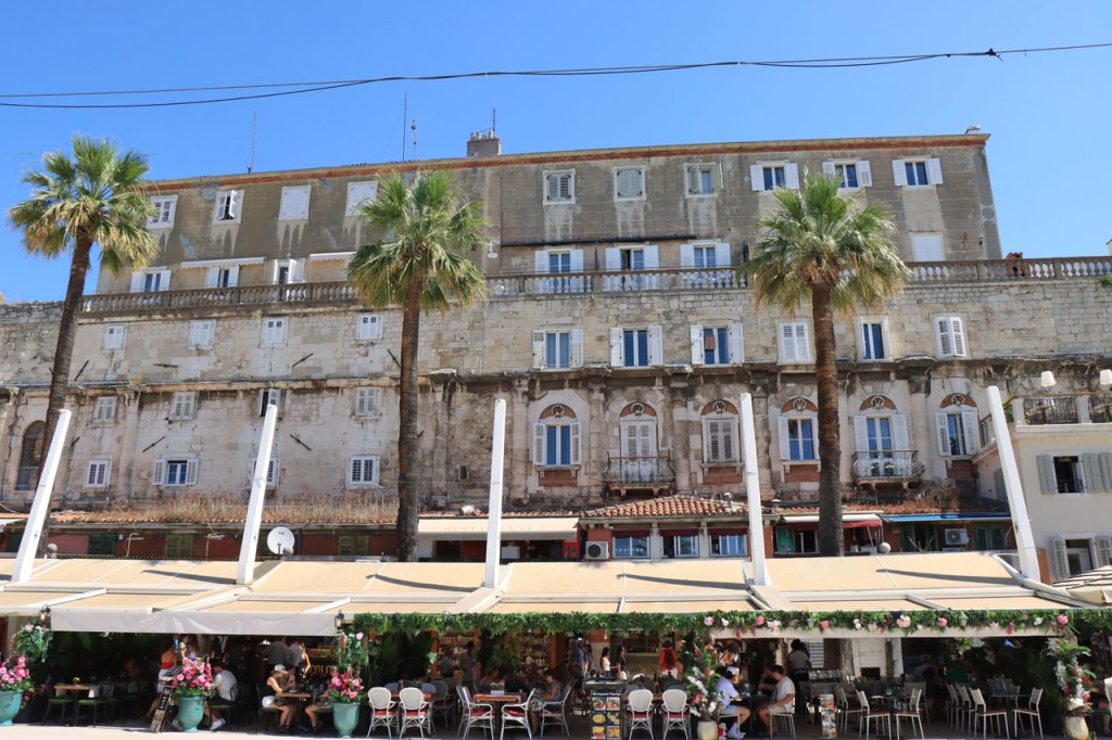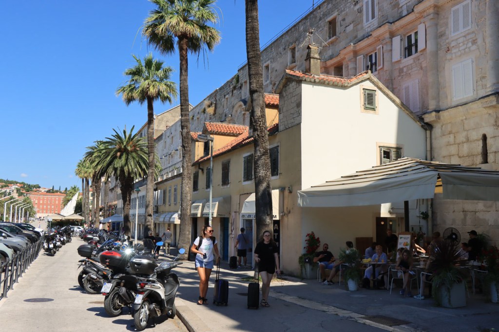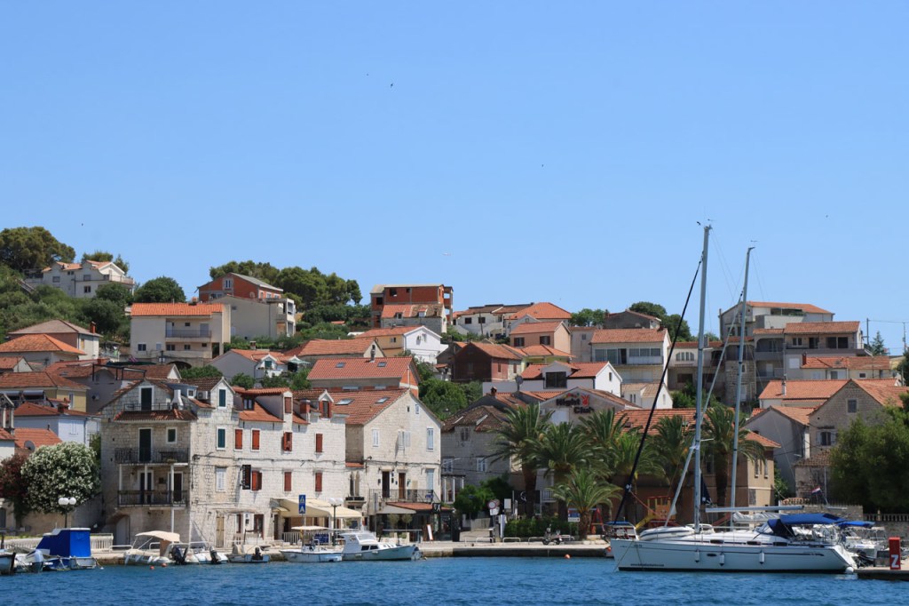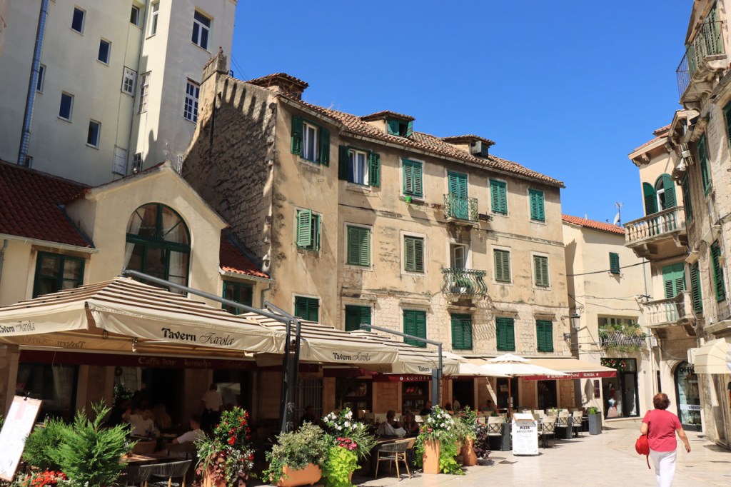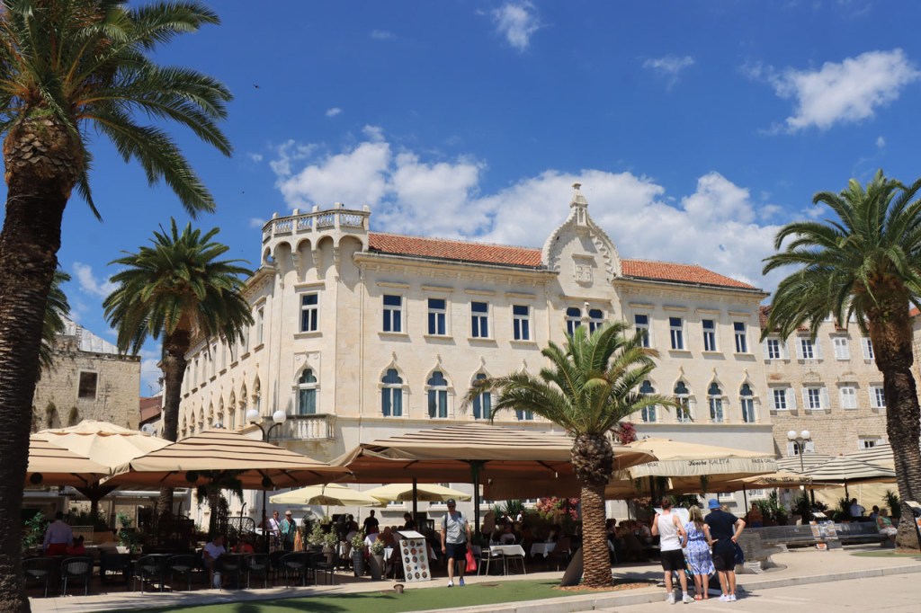 Split lag nog een ietsje verder dan dat ik ingeschat had. Het was een beetje gokken om de juiste route in en uit Split te vinden maar al bij al is het redelijk gelopen zoals ik vooraf in gedachten had. Split was schijnbaar van de Romeinen in plaats van de Venetianen en daar zijn ze blijkbaar trots op. Van Split ging het verder naar Trogir. Ik dacht dat ik van Split naar Trogis een mooie kustweg gevonden had, zo zag het er op kaart toch uit, maar dat bleek een misser te zijn, het was gewoon een eerder slechte en vooral vervelende weg te zijn. Nu, het alternatief was ook niet best, als ik daar al over mocht passeren. Trogir is een historisch stadje op een eilandje tussen het vaste land en een groter eiland. Het is ook één van de toeristische hotspots van Kroatië. Ik ging er eerst op zoek naar de camping om daarna nog even terug te keren naar het stadje. Ik had hier weer een super stevige prijs verwacht maar met 20 € kan ik op deze locatie best leven. Morgen moet ik bij vertrek weer over het eilandje, misschien stop ik nog wel eens even voor wat extra foto’s. Het valt bij al die historische stadjes, al van voor Kroatië, wel op dat blijkbaar alle mogelijke open plaatsen zoveel mogelijk moeten opgevuld worden met terrasjes. Het maakt het leven van de fotograaf er niet makkelijker op en die heeft het al niet zo makkelijk met al die smalle straatjes en moeilijk licht 😉 .