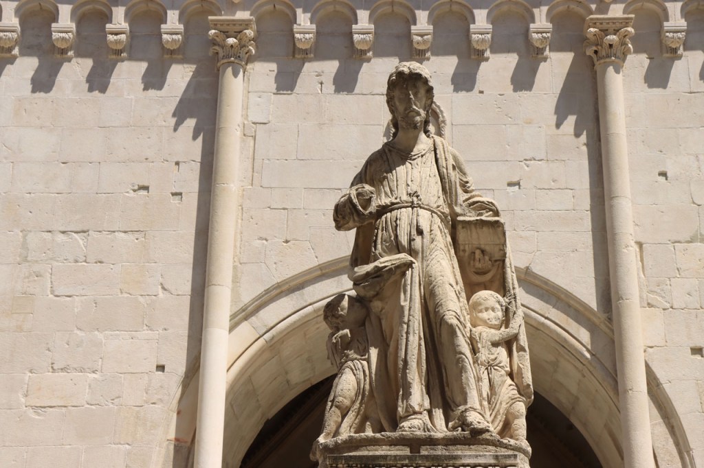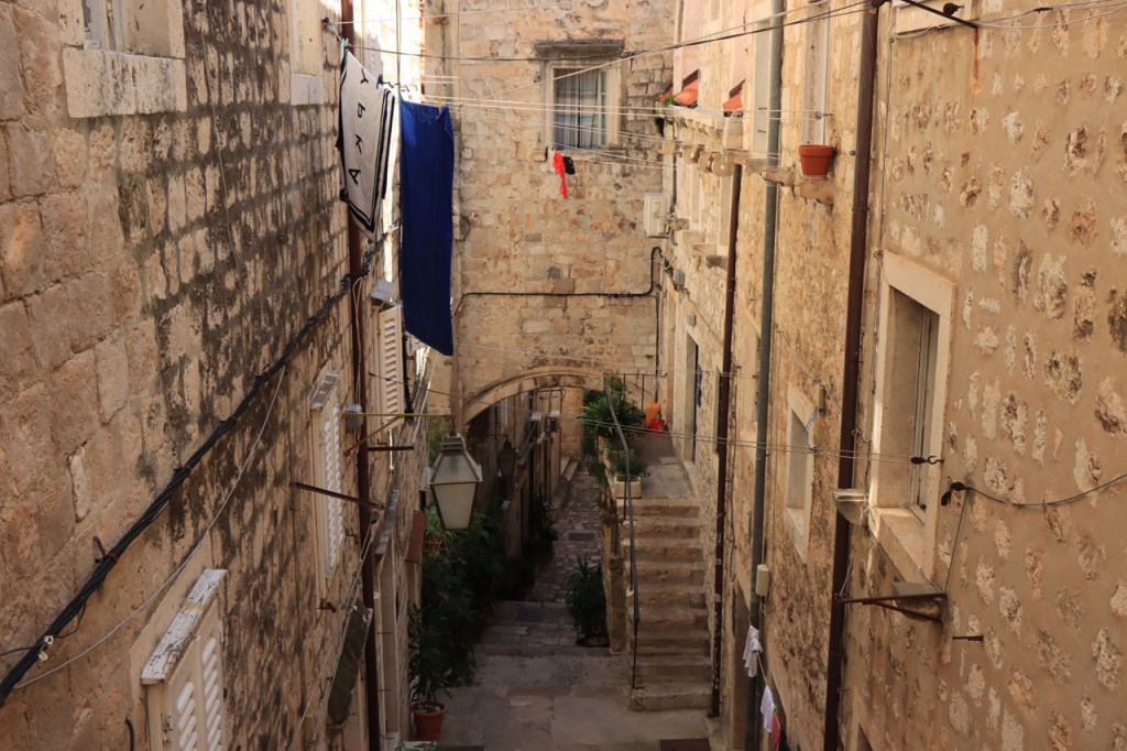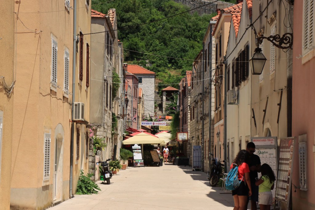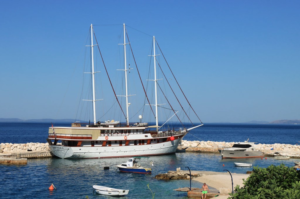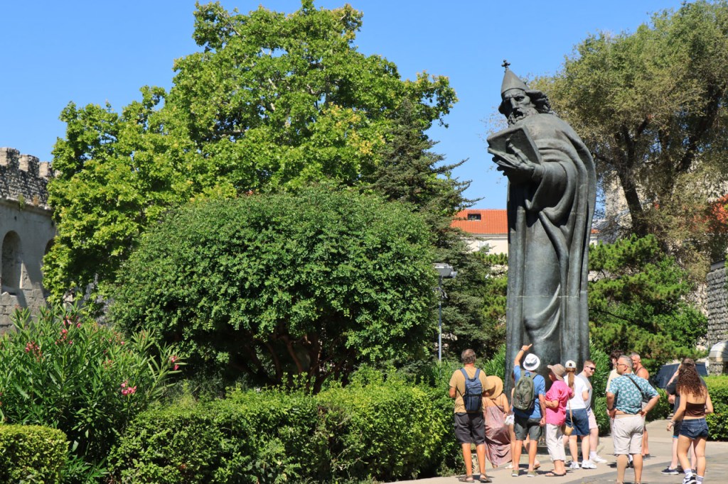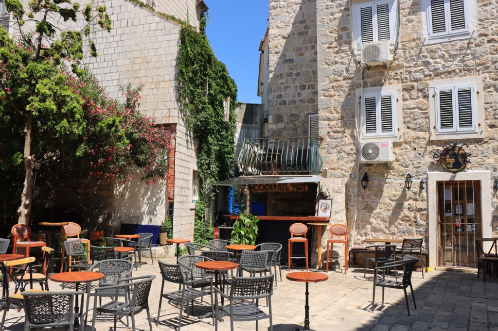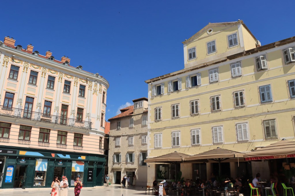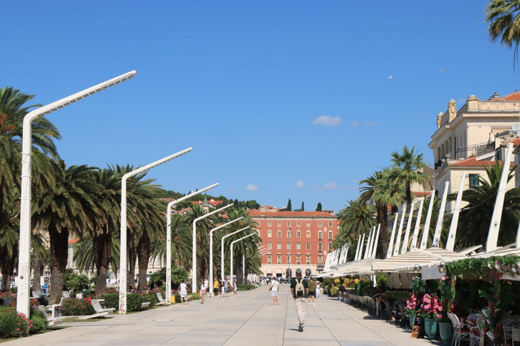 Split lag nog een ietsje verder dan dat ik ingeschat had. Het was een beetje gokken om de juiste route in en uit Split te vinden maar al bij al is het redelijk gelopen zoals ik vooraf in gedachten had. Split was schijnbaar van de Romeinen in plaats van de Venetianen en daar zijn ze blijkbaar trots op. Van Split ging het verder naar Trogir. Ik dacht dat ik van Split naar Trogis een mooie kustweg gevonden had, zo zag het er op kaart toch uit, maar dat bleek een misser te zijn, het was gewoon een eerder slechte en vooral vervelende weg te zijn. Nu, het alternatief was ook niet best, als ik daar al over mocht passeren. Trogir is een historisch stadje op een eilandje tussen het vaste land en een groter eiland. Het is ook één van de toeristische hotspots van Kroatië. Ik ging er eerst op zoek naar de camping om daarna nog even terug te keren naar het stadje. Ik had hier weer een super stevige prijs verwacht maar met 20 € kan ik op deze locatie best leven. Morgen moet ik bij vertrek weer over het eilandje, misschien stop ik nog wel eens even voor wat extra foto’s. Het valt bij al die historische stadjes, al van voor Kroatië, wel op dat blijkbaar alle mogelijke open plaatsen zoveel mogelijk moeten opgevuld worden met terrasjes. Het maakt het leven van de fotograaf er niet makkelijker op en die heeft het al niet zo makkelijk met al die smalle straatjes en moeilijk licht 😉 .