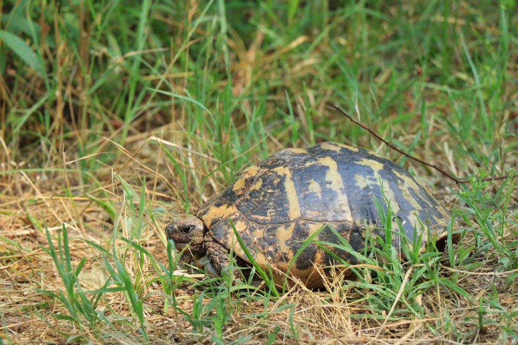 Bij ons kan je tegenwoordig geen water meer passeren of er zitten losgelaten schildpadden in. Hier zie je ze echter langs en over de weg kruipen, het zijn landschildpadden die hier gewoon in het wild horen te leven.