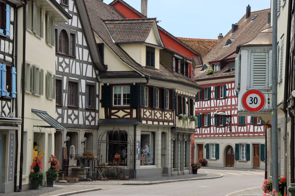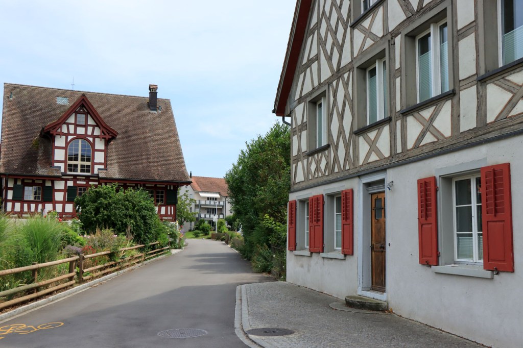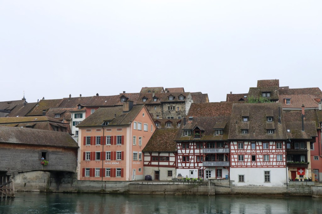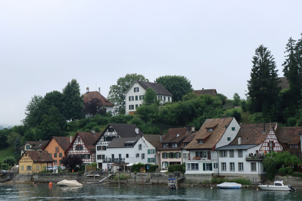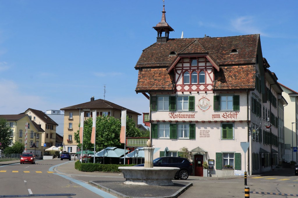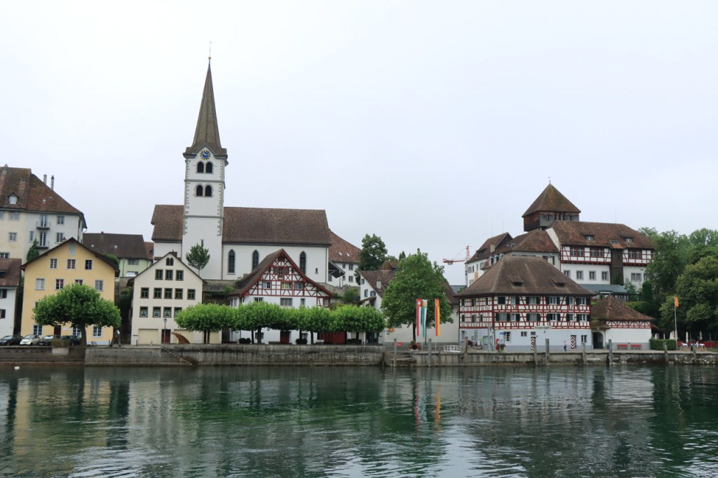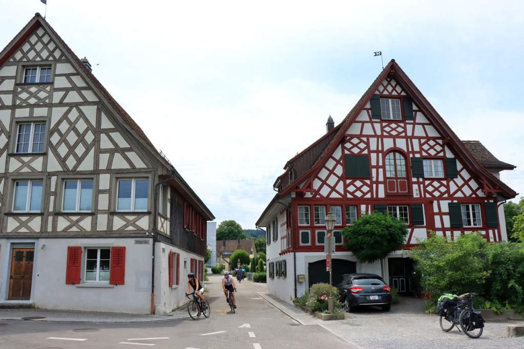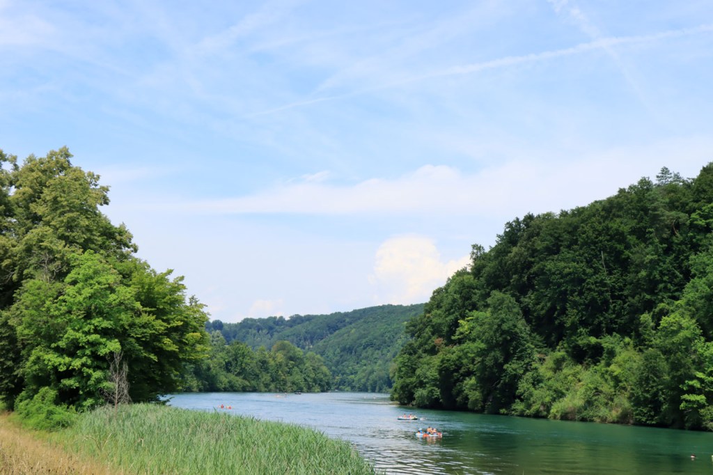 Terwijl de regen ’s avonds nog eerder in buitjes viel, ging hij vannacht stevig door. Vanmorgen stopte hij wel weer en ik kon droog inpakken, in de zin dat mijn tentje natuurlijk nog wel nat was maar dat het actueel niet meer regende. Er werd nog meer regen aangekondigd maar voor mij leek het nog wel mee te vallen, verder naar het westen zou het beter zijn. Aanvankelijk leek dat ook zo maar rond de middag kwamen er van daar toch donkere wolken opzetten. Ik besloot dan vanaf Rheinfelden de directe weg te volgen in plaats van de route, enerzijds omdat dit de kans verhoogde om voor de buien in Bazel te zijn en anderzijds omdat het de kans op een schuilplaats verhoogde wanneer het toch niet zou lukken voor de regen. Ik had geluk, net toen de eerste druppels vielen passeerde ik een groot shoppingcenter. Ik heb dan maar van de gelegenheid gebruik gemaakt om daar nog wat inkopen te doen en nog een broodje te eten om zo de bui uit te zitten. Het was echt wel een bui van het type waarin je verzuipt maar meteen ook van het type dat, in principe, niet urenlang doorgaat. Een uurtje later kon ik verder, met nog steeds dreigende wolken maar wel droog.
