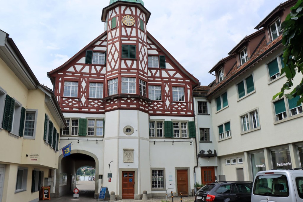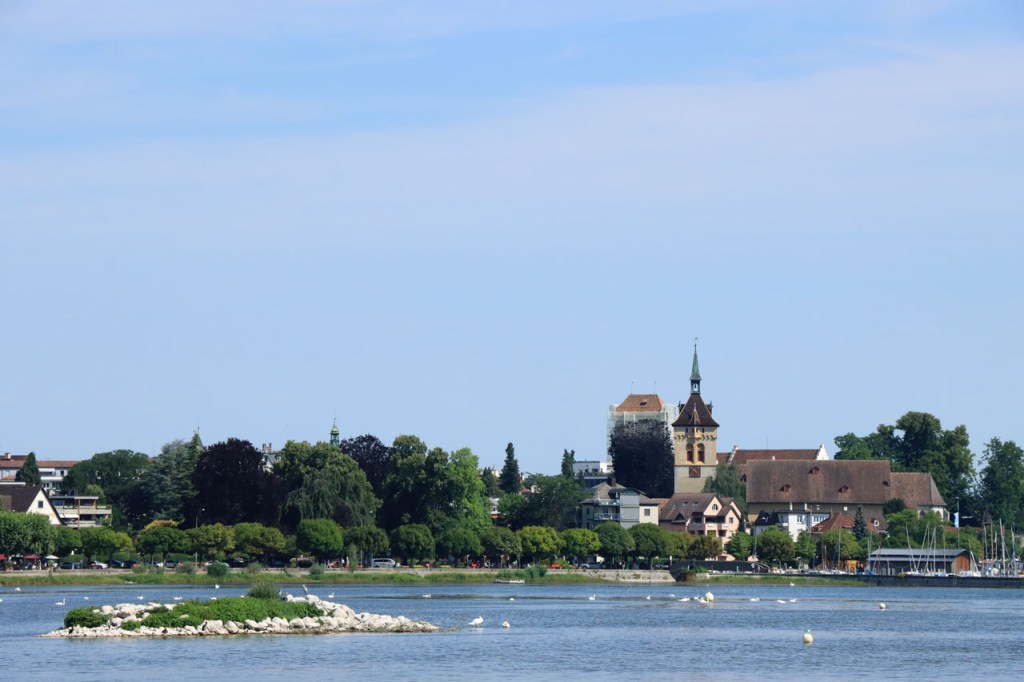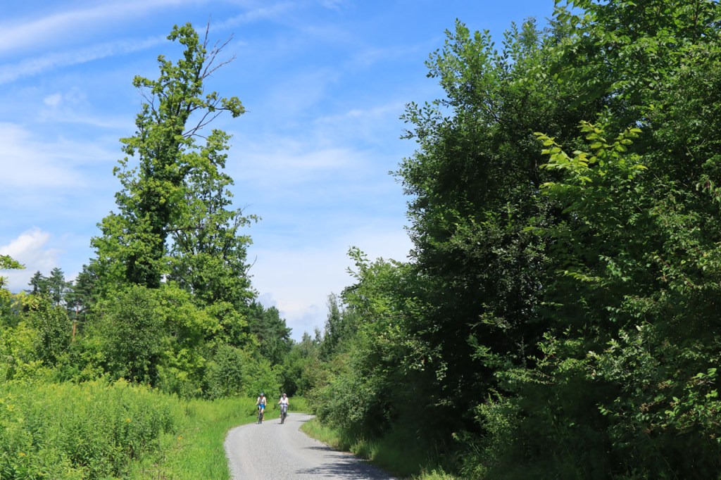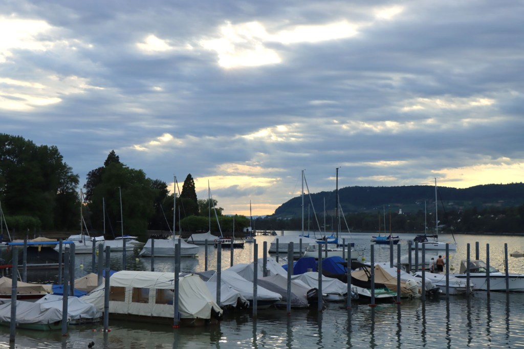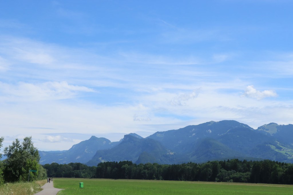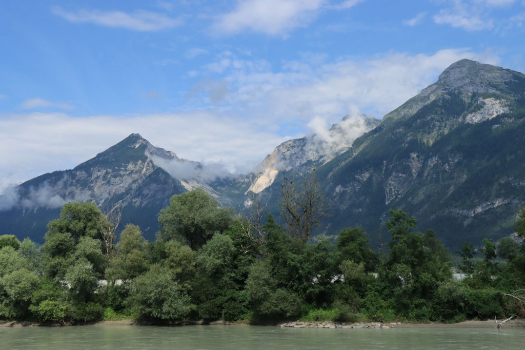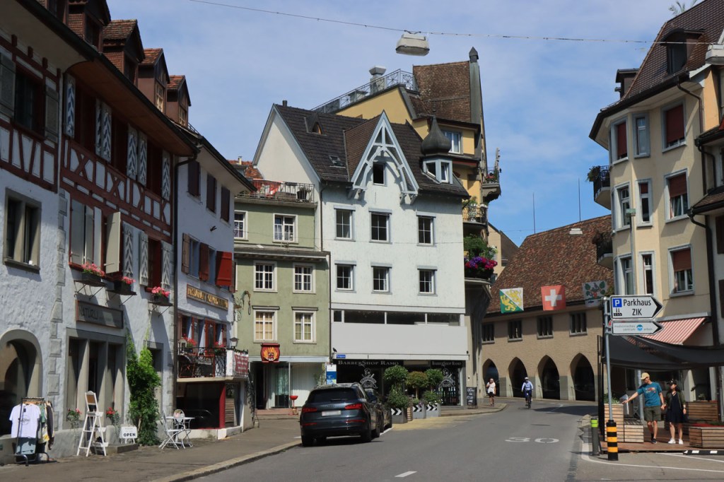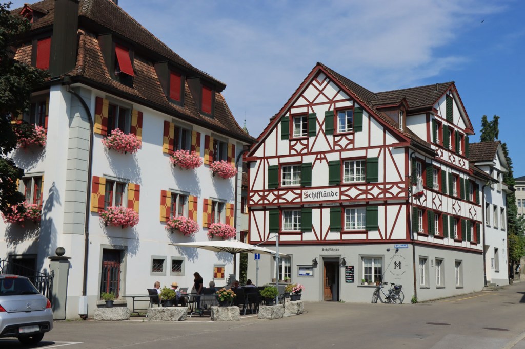 Terwijl de regen ’s avonds nog eerder in buitjes viel, ging hij vannacht stevig door. Vanmorgen stopte hij wel weer en ik kon droog inpakken, in de zin dat mijn tentje natuurlijk nog wel nat was maar dat het actueel niet meer regende. Er werd nog meer regen aangekondigd maar voor mij leek het nog wel mee te vallen, verder naar het westen zou het beter zijn. Aanvankelijk leek dat ook zo maar rond de middag kwamen er van daar toch donkere wolken opzetten. Ik besloot dan vanaf Rheinfelden de directe weg te volgen in plaats van de route, enerzijds omdat dit de kans verhoogde om voor de buien in Bazel te zijn en anderzijds omdat het de kans op een schuilplaats verhoogde wanneer het toch niet zou lukken voor de regen. Ik had geluk, net toen de eerste druppels vielen passeerde ik een groot shoppingcenter. Ik heb dan maar van de gelegenheid gebruik gemaakt om daar nog wat inkopen te doen en nog een broodje te eten om zo de bui uit te zitten. Het was echt wel een bui van het type waarin je verzuipt maar meteen ook van het type dat, in principe, niet urenlang doorgaat. Een uurtje later kon ik verder, met nog steeds dreigende wolken maar wel droog.
