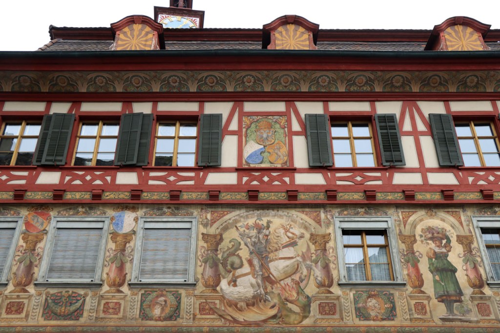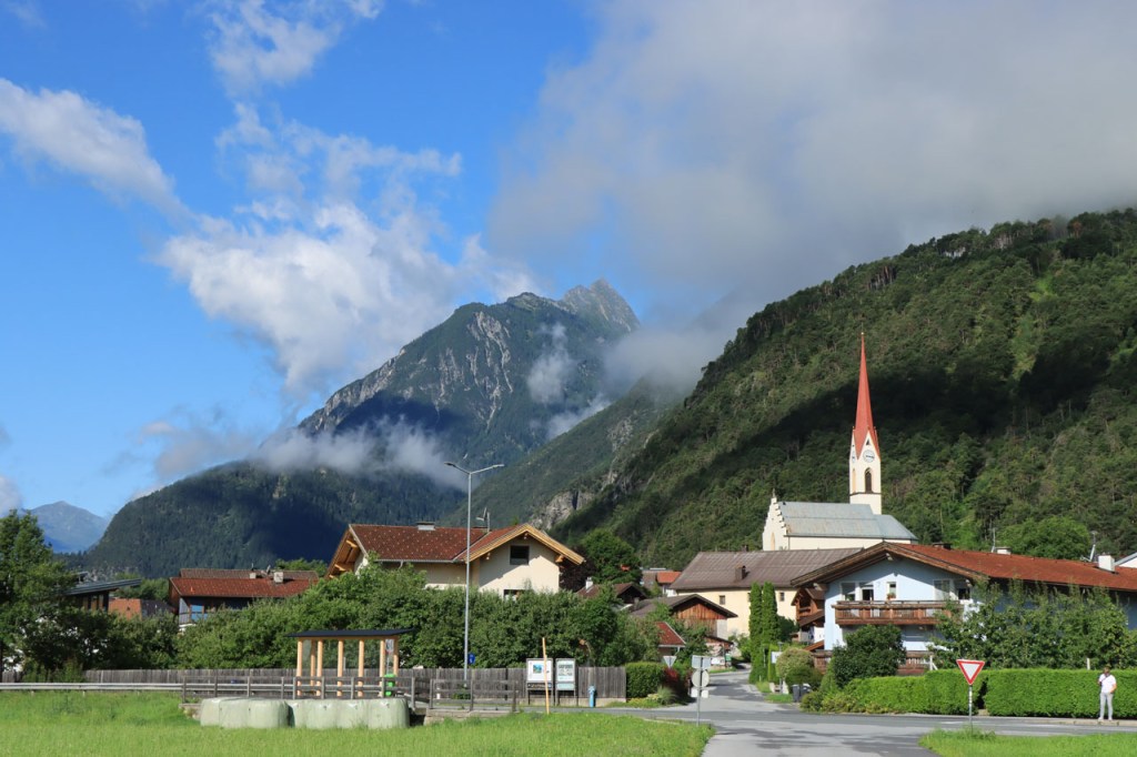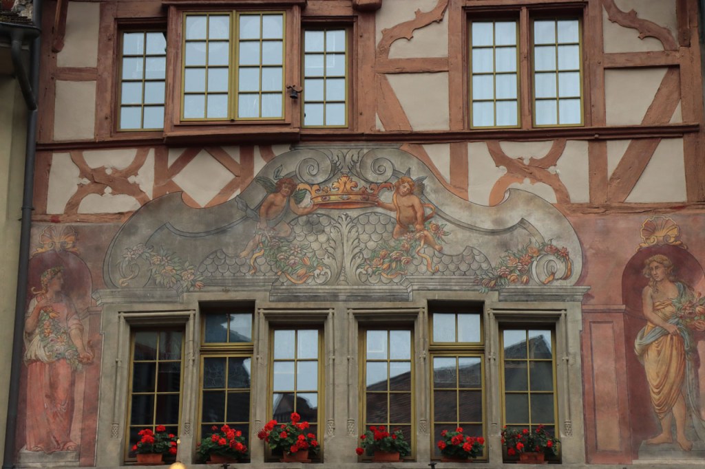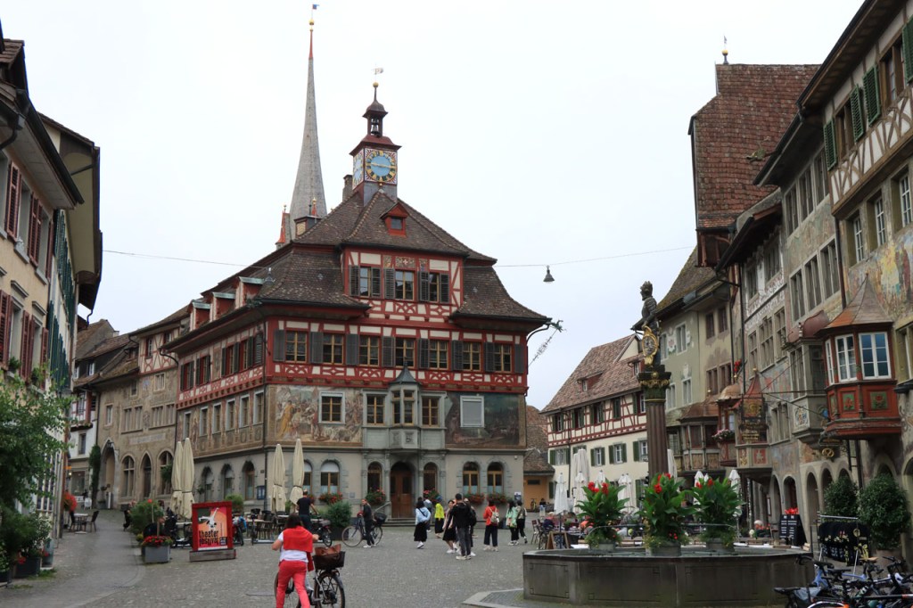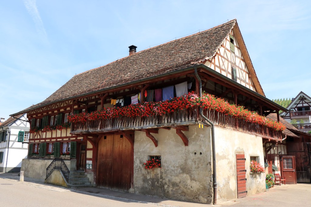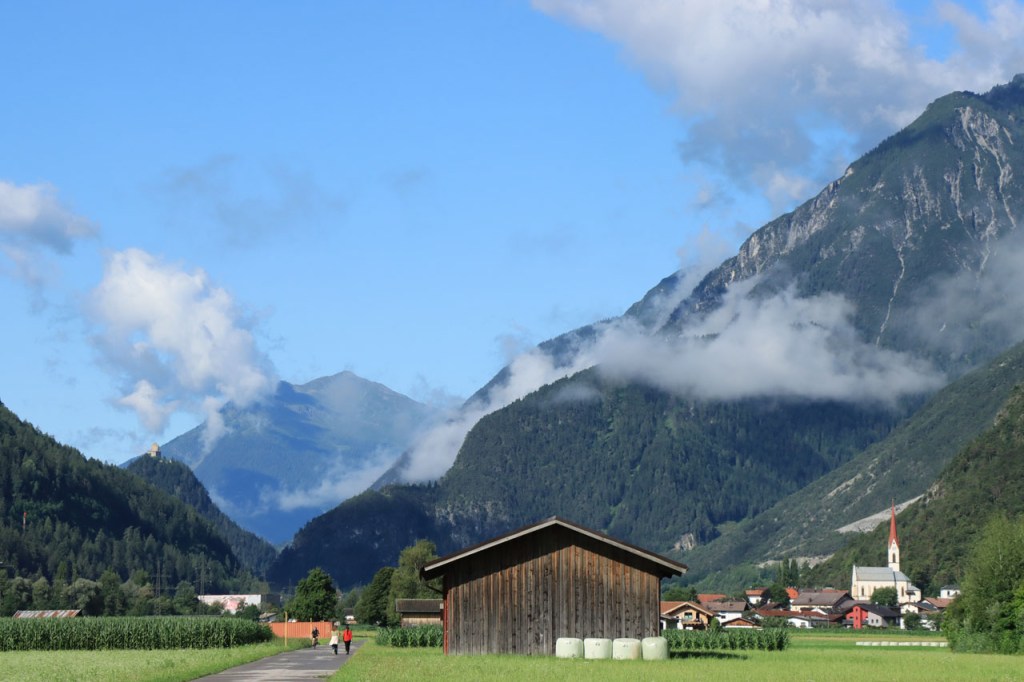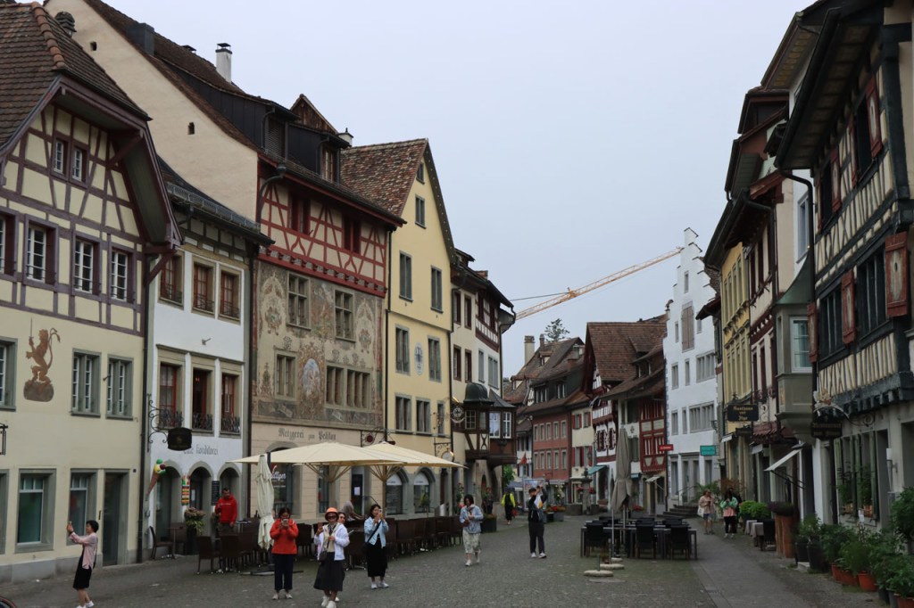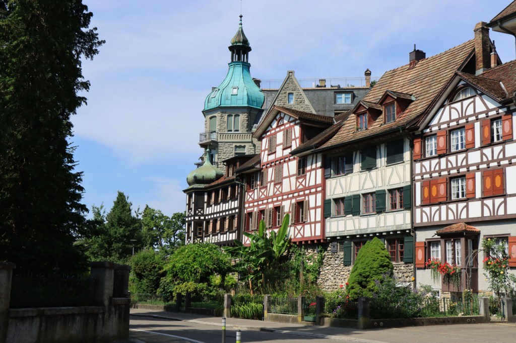 Terwijl de regen ’s avonds nog eerder in buitjes viel, ging hij vannacht stevig door. Vanmorgen stopte hij wel weer en ik kon droog inpakken, in de zin dat mijn tentje natuurlijk nog wel nat was maar dat het actueel niet meer regende. Er werd nog meer regen aangekondigd maar voor mij leek het nog wel mee te vallen, verder naar het westen zou het beter zijn. Aanvankelijk leek dat ook zo maar rond de middag kwamen er van daar toch donkere wolken opzetten. Ik besloot dan vanaf Rheinfelden de directe weg te volgen in plaats van de route, enerzijds omdat dit de kans verhoogde om voor de buien in Bazel te zijn en anderzijds omdat het de kans op een schuilplaats verhoogde wanneer het toch niet zou lukken voor de regen. Ik had geluk, net toen de eerste druppels vielen passeerde ik een groot shoppingcenter. Ik heb dan maar van de gelegenheid gebruik gemaakt om daar nog wat inkopen te doen en nog een broodje te eten om zo de bui uit te zitten. Het was echt wel een bui van het type waarin je verzuipt maar meteen ook van het type dat, in principe, niet urenlang doorgaat. Een uurtje later kon ik verder, met nog steeds dreigende wolken maar wel droog.
