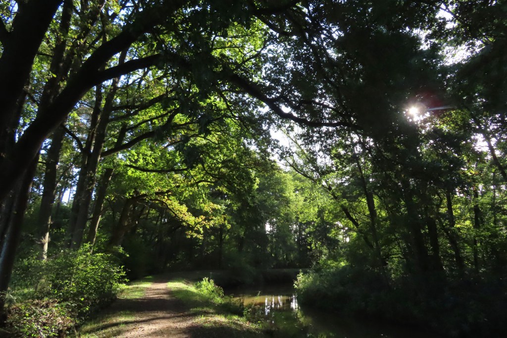 Ik moest onderweg wel mijn route wat aanpassen toen de weg afgesloten was voor werken. Met een beetje goede wil zou het voor fietsers wel mogelijk zijn om veilig te passeren, er werd slechts een gleuf voor kabels naast de weg gegraven, maar met een hekken van gracht tot gracht wordt dat wel lastig. Een deftig alternatief was er niet dus trok ik maar een beetje op avontuur door het bos.