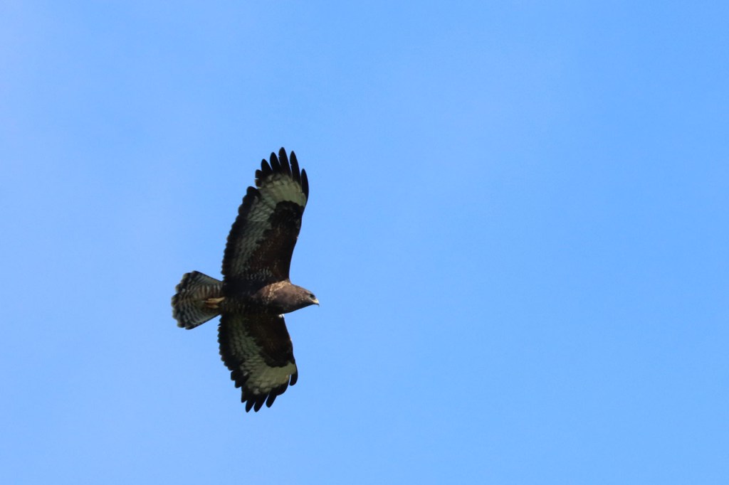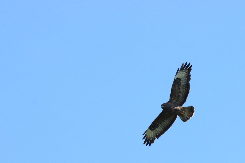Het weer was vergelijkbaar met dat van gisteren, een blauwe hemel met af en toe wat wolkjes en een wind die weer net wat steviger was dan gezegd werd. In de richting waarin ik vandaag fietste is de kans om wild leven te zien aanzienlijk kleiner dan de andere richtingen. In het slot zou het wel meer kunnen maar daar was het, op zo’n mooie zondag, wat te druk. In het begin kreeg ik wel weer een mooie buizerd voor de lens.