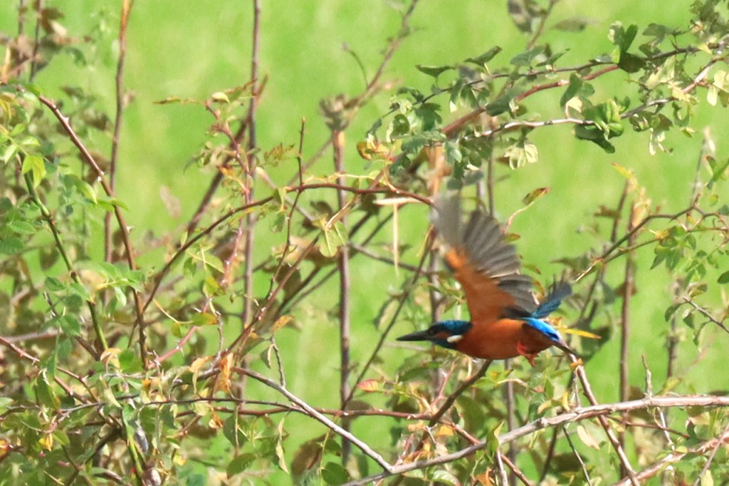 Ik had hier, in de Westhoek, sinds de terugkeer van mijn reis enkel ’s avonds langs de vesten succes met ijsvogels, ik zag er sporadisch wel eens eentje ergens anders maar kon die niet in beeld brengen. Vandaag trof ik eindelijk wel weer mooi raak, langs de IJzer. Ik moest wel even snel zijn vanwege de naderende “water recreanten”, dat is tegenwoordig erg succesvol in Diksmuide.