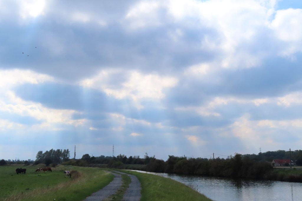 De hemel was zwaar bewolkt maar het zou wel weer droog blijven en er was wat minder wind, nog altijd wel best goed voelbaar maar toch minder dan gisteren. Al bij al dus geschikt fietsweer, zeker toen het onderweg ook nog ging opklaren.