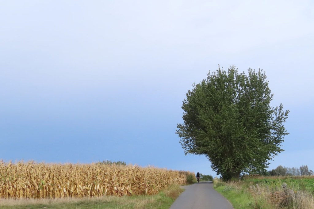 Vandaag koos ik voor een ochtendrit, voor er potentieel regen en zeker meer wind zou opkomen. Ik kreeg er wel al snel spijt van, toen ik achter mij een donkere hemel zag afkomen, maar ik besloot van toch door te zetten. Gelukkig bleef het wel droog, ook toen ik uiteindelijk omkeerde en terug richting die donkere hemel ging. De wind was er wel al van in de voormiddag en trok tegen de middag inderdaad nog aan.