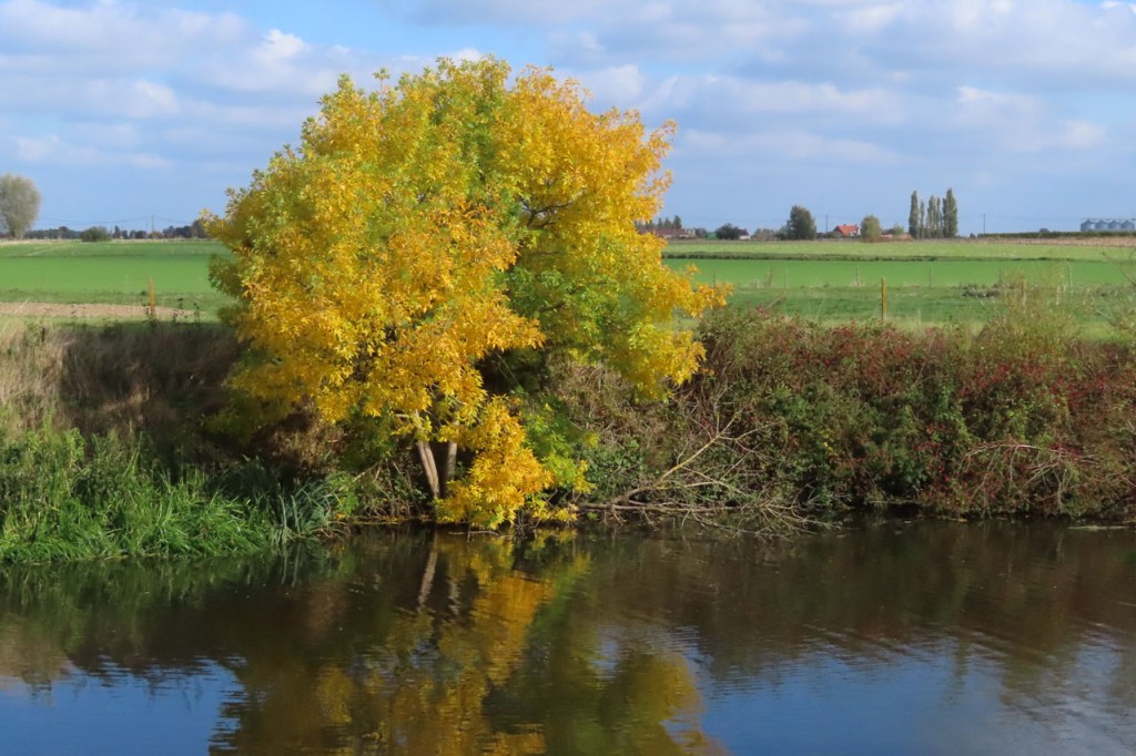 Vandaag koos ik nog eens voor een wandeling. Het was wel erg geschikt fietsweer, vrijwel windstil, maar ik had geen zin in weer een bijzonder grijze rit. Ook hoopte ik wel om enkele leuke vogeltjes in beeld te brengen maar dat viel erg tegen. Ik hoorde er behoorlijk wat en zag er ook wel, wat trouwens ook vanop de fiets geldt, maar ze verdwijnen momenteel toch zo snel. Dan zijn paddenstoelen en slakken makkelijker, die vliegen niet zo rap weg 🙂 .