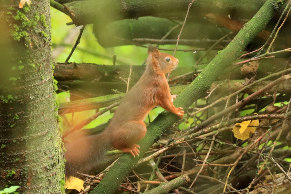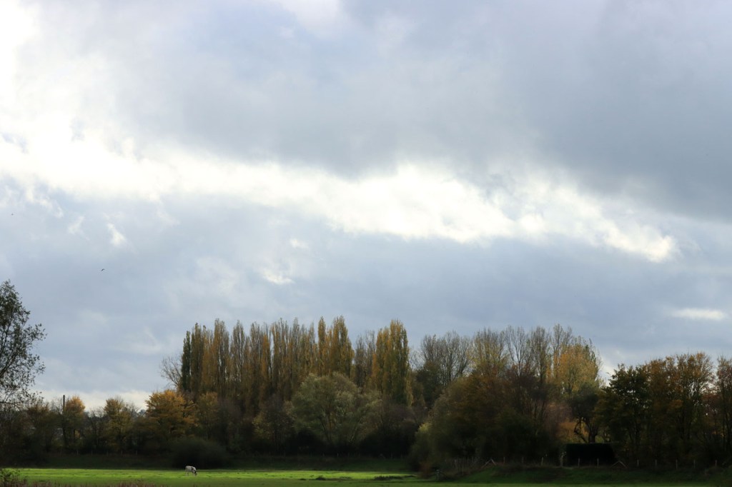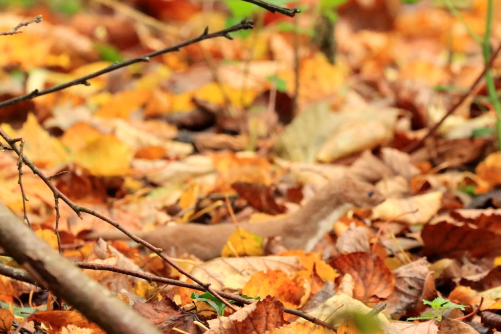 Ik zag vandaag enkele wezels maar ze waren wat snel voor een degelijke foto. Op het moment dat je ze opmerkte, tussen de herfstbladeren, waren ze alweer weg en dan moest je ook nog richten en scherpstellen. Ook de ijsvogel heb ik slechts wazig terwijl hij van me weg vloog, het was wel al een hele tijd geleden dat ik er aan de Verdronken Weide nog eens eentje zag.