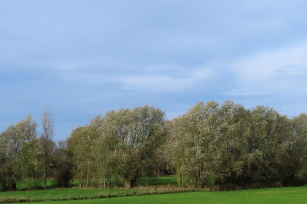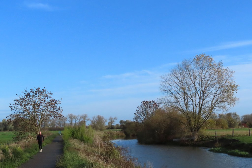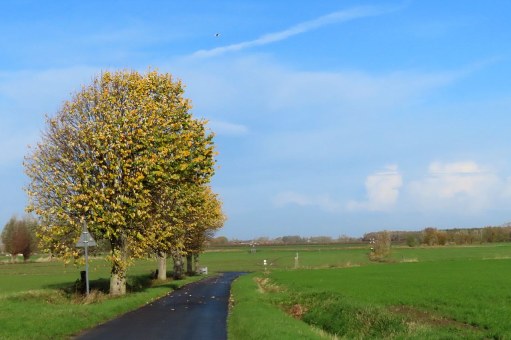 Vanmorgen had ik wel voldoende vertrouwen in het weer voor een ochtendritje. Een ritje dat dan ook weer niet te lang moest duren, om de aangekondigde regen voor te blijven. Er stond wel een behoorlijk stevig windje en de wegen lagen nog vochtig van afgelopen nacht. Mijn zware val licht ondertussen al jaren achter mij maar ik ben toch blijvend extra voorzichtig op vochtige wegen. Terugkomen was lastig, vanwege de tegenwind maar ook wel een beetje door het tegenlicht. De zon klimt tegenwoordig niet zo hoog meer en als ze dan ook nog eens reflecteert in het water dan wordt dat al eens lastig. Rechts en achter mij werd het ondertussen al behoorlijk grijs. De aangekondigde regen liet echter nog een hele tijd op zich wachten, ik had toch een wat langer ritje kunnen doen. Toch weer wat te weinig vertrouwen in het weer 🙂 .