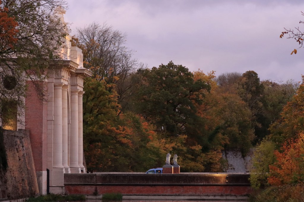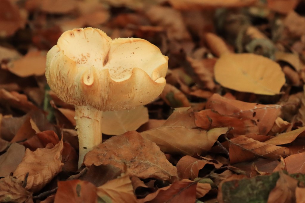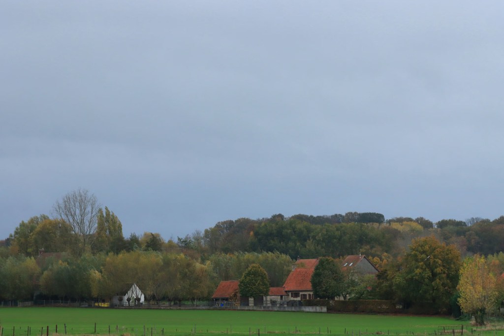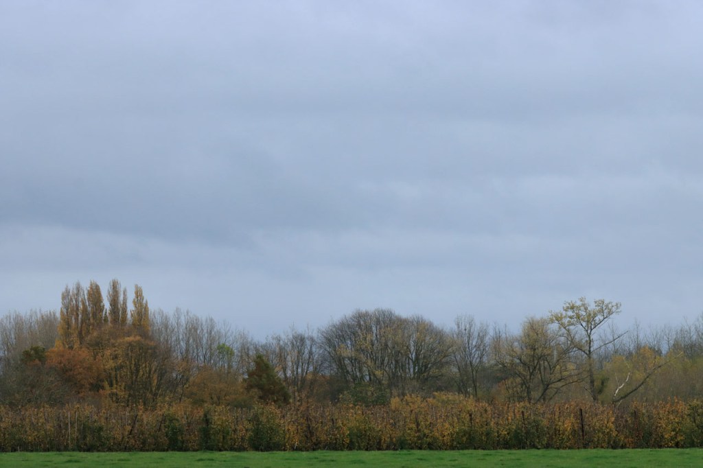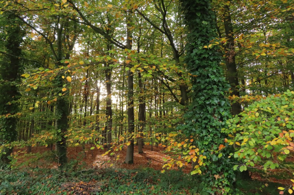 In de bossen brak even een straaltje zon door maar op de terugweg was het alweer terug donkergrijs.