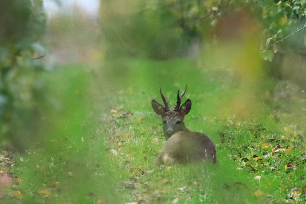 De ree zag ik niet in de Gasthuisbossen, het is al echt lang geleden dat ik er daar nog zag, maar op de terugweg in de boomgaard bij Zillebeke Vijver. Hier was het ondertussen ook al even geleden dat ik ze zag maar er huizen dus toch nog degelijk reeën rond Zillebeke Vijver. Ik moest door het bosje schieten en het was dus best moeilijk scherpstellen maar ik heb hem toch nog behoorlijk getroffen 🙂 . Het was ook in die boomgaard dat er onlangs zwaar gejaagd werd maar dat was dus schijnbaar niet op reeën, deze heeft er alvast geen last van gehad 🙂 .
