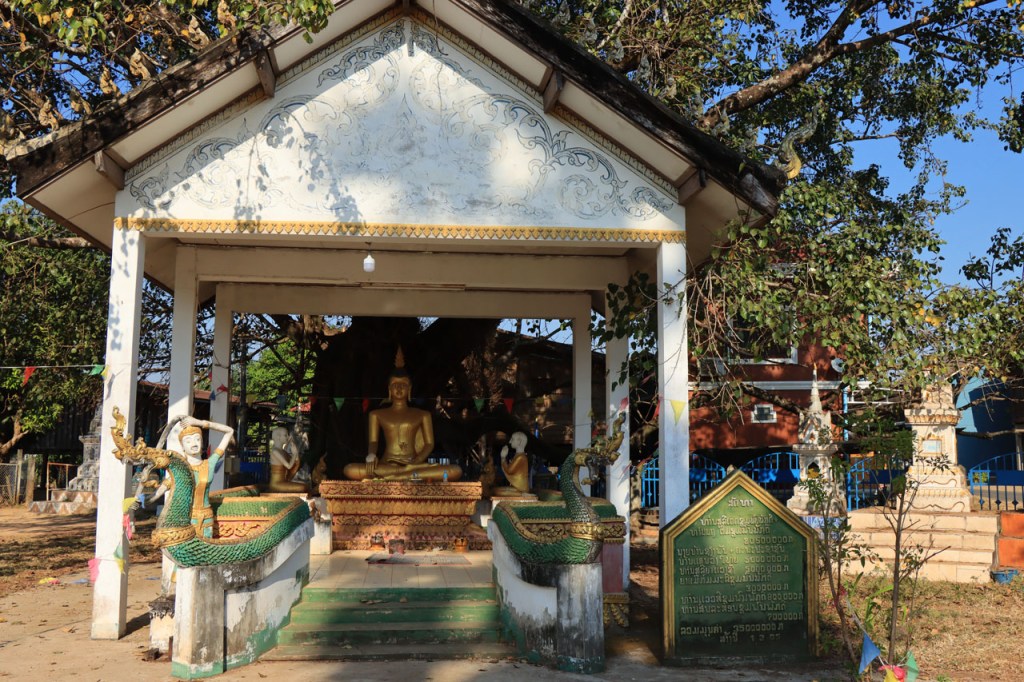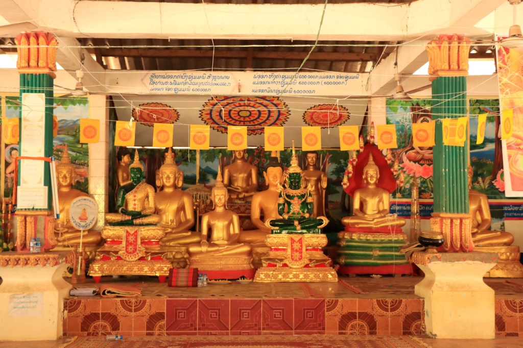 Het ontbijt was vanmorgen eens stuk uitgebreider dan dat ik de afgelopen dagen gewoon was 🙂 . Pakse mag dan misschien niet de meest interessante stad in Laos zijn maar ik vind het toch zijn charme hebben, met name de buurt rond het hotel. Het lijkt me dat dit het oude Franse Quartier was. Verder is er natuurlijk ook de obligate Wat in de buurt 😉 . Na de middag reed ik naar Wat Phousalao, waar de grote Boeddha over de Mekong uitkijkt. Nu, dat was dus echt een berg waar het sterk was om hem omhoog te fietsen. Dat was de Vlaamse Ardennen op zijn best 🙂 . De Wat is nog vrij nieuw. Het begon met de aanleg van een veldweg naar de locatie in 2006, ondertussen een gebroken betonnen weg. In 2007 werd begonnen aan een tempel en verscheidene boeddhistische beelden lager op de berg. Aan de grote Boeddha werd in 2010 begonnen. Ik ben ondertussen ook miljonair geworden, ik wisselde wat geld en voor 50€ ben je hier miljonair 😉 .