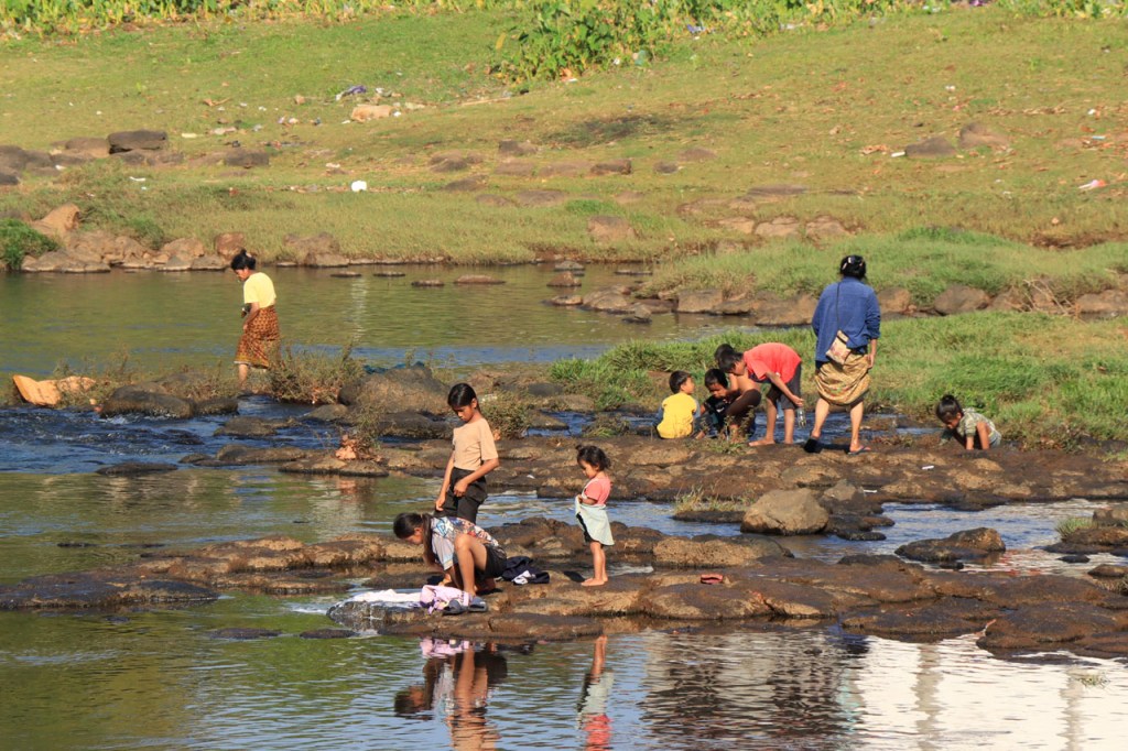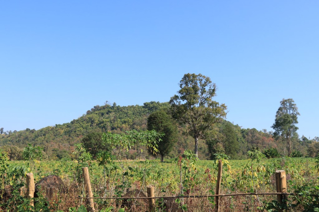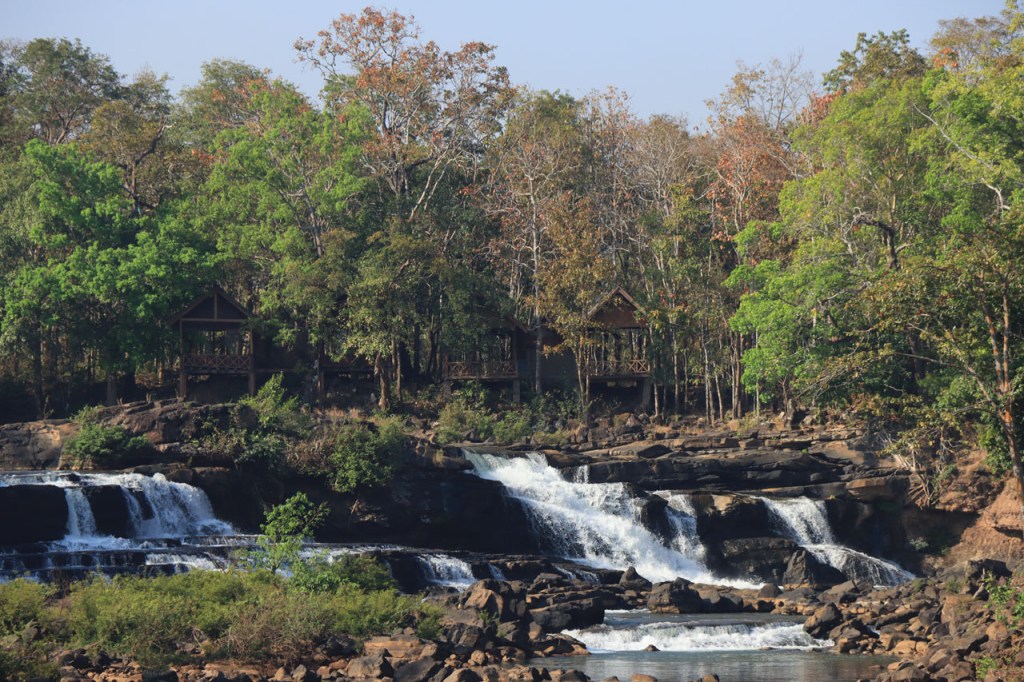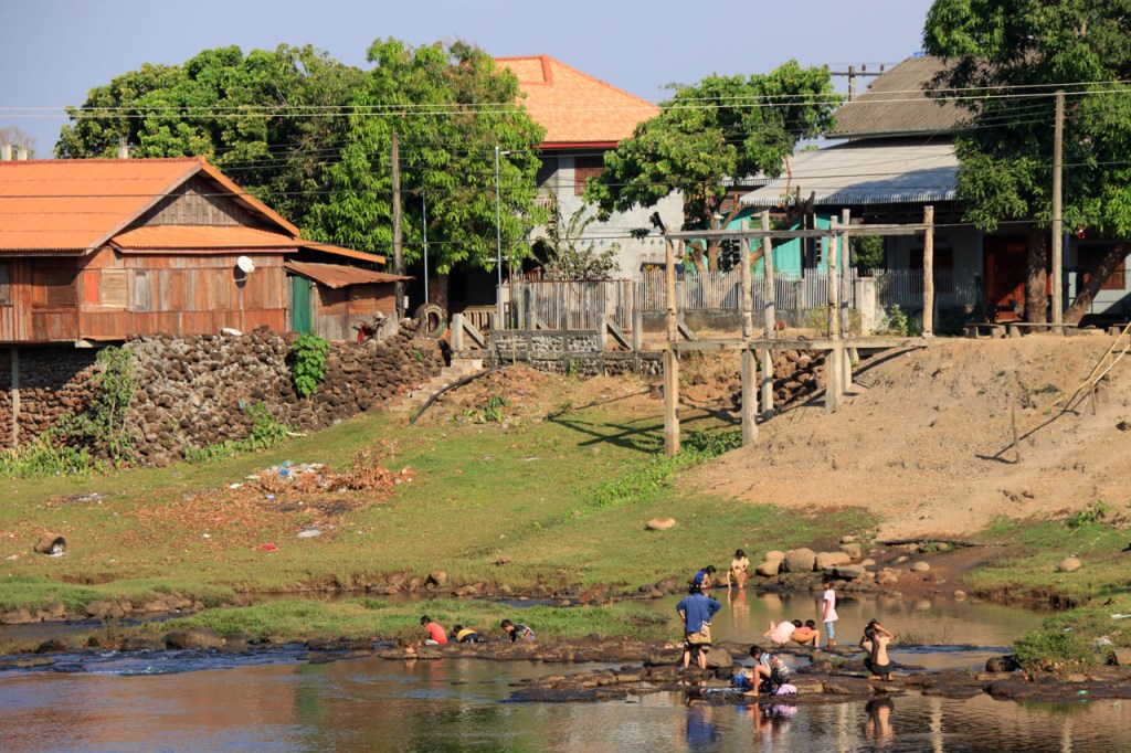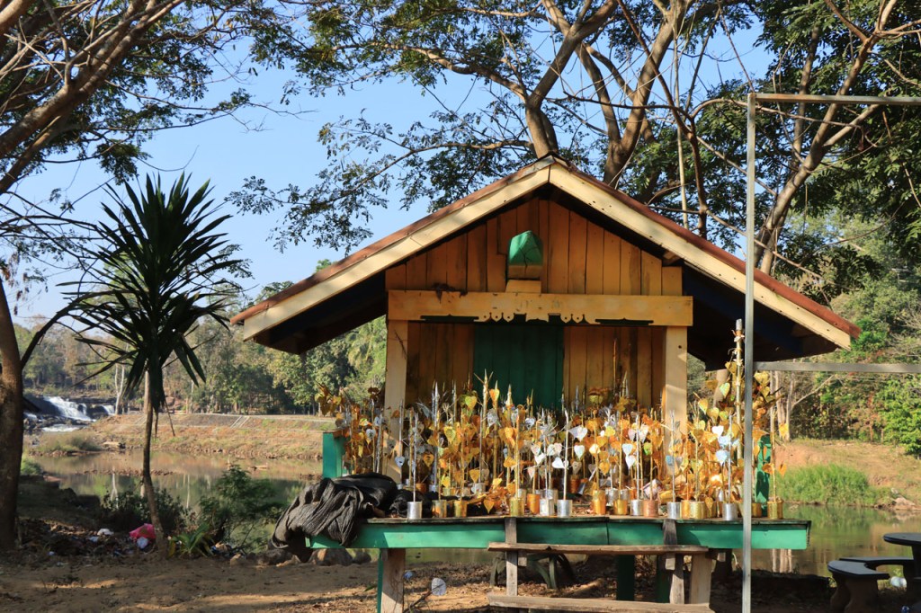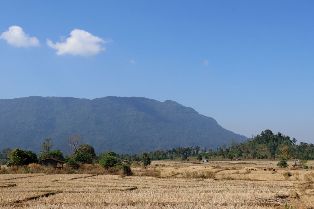 De eerste 20 Km gingen vandaag weer over een brede, grote weg. Na 20 Km volgde de enige afslag van vandaag en ging het over op een smallere grote weg 🙂 . Het werd er wel aangenamer van omgeving om door te fietsen. Ik zag vandaag nog 3 fietsreizigers, 2 bij het verlaten van Pakse en eentje verderop onderweg, en één lokale wielertoerist, warmpjes ingepakt op een mooie Trek. Ook kruiste ik verderop nog een georganiseerde fietstoer, eentje van de soort die ik vroeger ook wel deed. Verder passeerden mij veel witte mensen op scooters en dat is niet noodzakelijk goed nieuws als je bedenkt dat die waarschijnlijk allemaal naar hetzelfde doel gaan en je daar geen reservatie hebt. Er is daar echter een ruime keuze aan accommodatie in alle categorieën en er waren er ook wel zonder bagage, met de scooter is het waarschijnlijk wel te doen als daguitstap vanuit Pakse. Met 28€ is mijn verblijf hier pokkeduur, naar lokale standaard 😉 , maar locatie is alles 🙂 . Ik was hier overigens al wel eens eerder, in dezelfde lodge, 22 jaar geleden bij mijn eerste Laos reis maar dat was met zo’n georganiseerde rondreis. De bungalows hebben waarschijnlijk ondertussen al wel eens een opknapbeurt gehad 😉 , ze zijn nog steeds dik in orde. Er staan hier bij nog 2 bungalowtjes fiets(en) op het balkon, mountainbikes, ik ben dus schijnbaar ook hier niet de enige fietser. Het was vandaag een behoorlijk stevige rit met kilometers, hoogtemeters (1.000 m) en warmte.