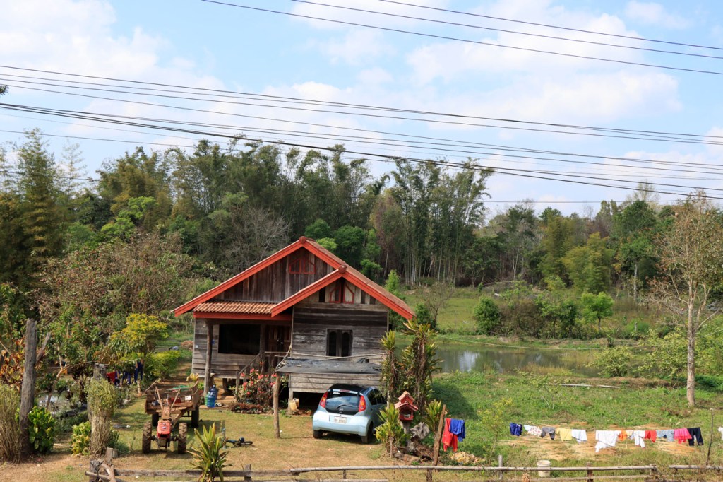 Vandaag de eerste echte rit gemaakt en dan voel je toch de directe overgang van winter naar zomer wel een beetje 🙂 . Naast niet echt de meest toeristische is de streek ook niet echt de meest fotogenieke 🙂 . Ik reed wel zowat de hele dag tussen de rijstvelden maar in het droge seizoen zijn dat ook maar dorre stoppelvelden 🙂 . Ook de rubberplantages vielen wel op maar maakten niet echt indruk. Wel is er, zoals gisteren al verwittigd, altijd wel een Wat links of rechts 🙂 . Toch was het trouwens wel een leuke rit om mee te beginnen, door landelijk gebied. Achteraf moet ik overigens misschien wel gelukkig zijn dat het niet de meest fotogenieke streek is, ik eindigde toch weer met een karrenvracht aan foto’s 🙂 . Eindigen deed ik in het Bluemoon Riverside Resort, een klinkende naam met mooie bungalowtjes maar verder nogal verlaten. Het ligt wel zo’n beetje in de natuur en je hoort dan ook roepen die je thuis niet te horen krijgt. Ik heb echter niet mijn zoomlens ter beschikking om op jacht te gaan 🙂 .