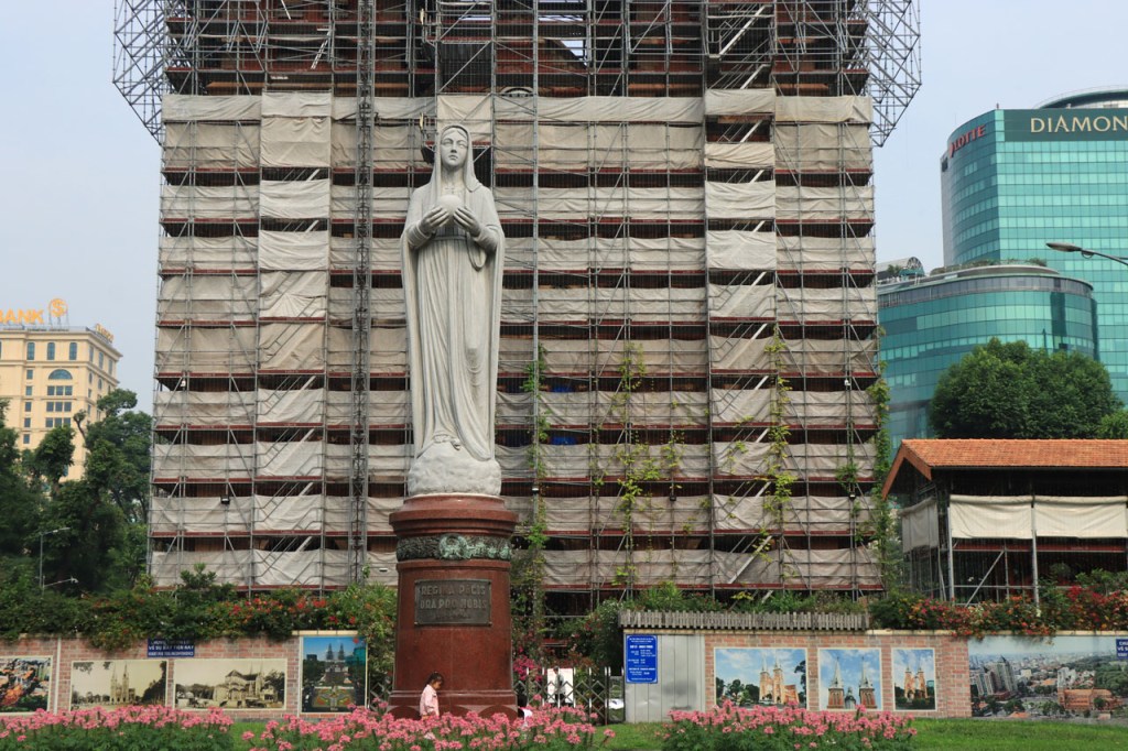 Saigon heeft een grote kathedraal maar ze is in onderhoud, de opera overigens ook. Het historische postkantoor niet. Ik weet niet echt waarom dat postkantoor meer historisch zou zijn dan de kathedraal of de opera maar het moet wel één van de meest gefotografeerde postkantoren ter wereld zijn.