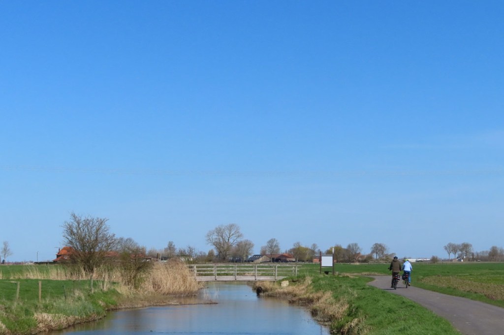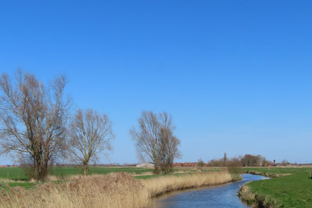 Ook vandaag weer onder een stralend blauwe hemel gefietst. Officieel zou de wind weggeweest zijn maar ik merkte weinig verschil, tenzij dat hij een ietsje gedraaid was.