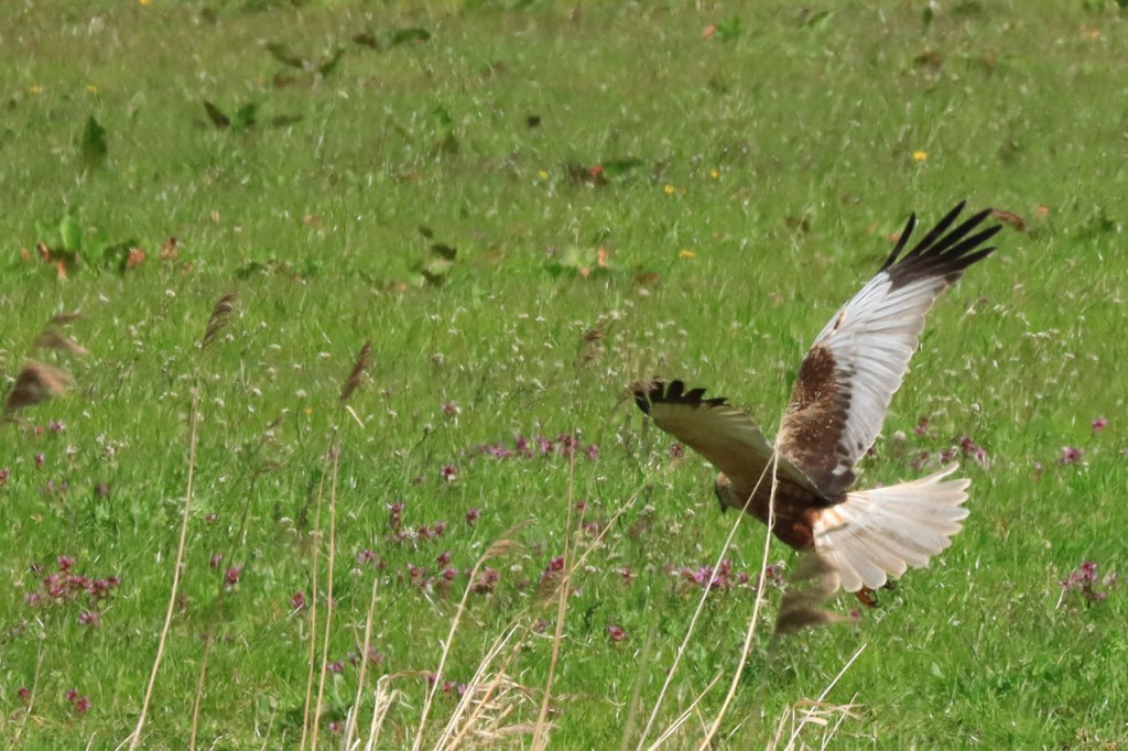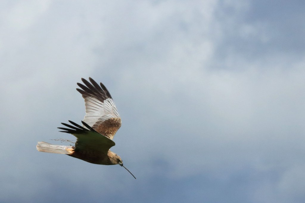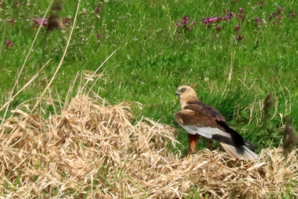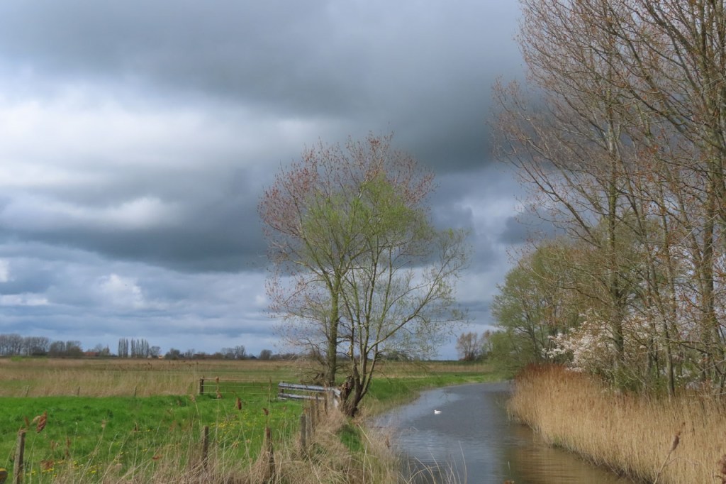 Het zag er lang anders naar uit, tijdens een natte voormiddag, maar uiteindelijk maakte ik toch weer een ritje. De kans was klein dat ik hem nog eens zou treffen maar ik wou nog eens naar de roerdomp gaan uitkijken. Ik korte de rit wel wat in tegenover wat ik bij vertrek nog voor ogen had, ik had tot Diksmuide of wat verder naar Tervate willen fietsen maar het was dan wel wat opgeklaard maar er stond nog een echt onaangename wind en de buiendreiging bleef ook wel steeds aanwezig. Het gaf me de gelegenheid om nog eens het pad van Knokkebrug naar Blankaart te doen, het past niet in mijn “normale” ritten maar er is bijna altijd wel wat te zien. Vooral de bruine kiekendief laat zich daar dikwijls op zijn best zien, je ziet ze overal wel in de omgeving maar nergens zoals op dit stukje. Ik heb het niet op foto maar leerde nog wel wat bij vandaag, de bruine kiekendief nest op de grond.