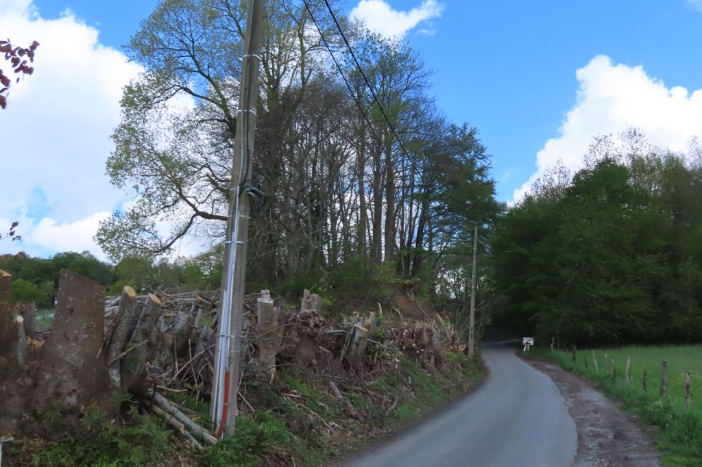Ook in de Vlaamse Ardennen worden er stevig bomen gekapt. Je moet toch geen professor te zijn om te weten dat als je in een holle weg de begroeiing wegsnoeit je op termijn modderstromen gaat krijgen bij regenval 😦 .