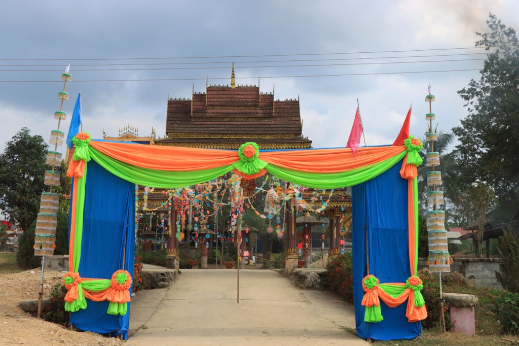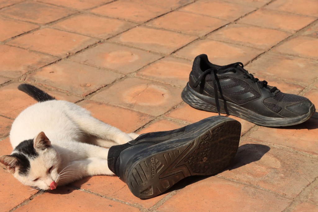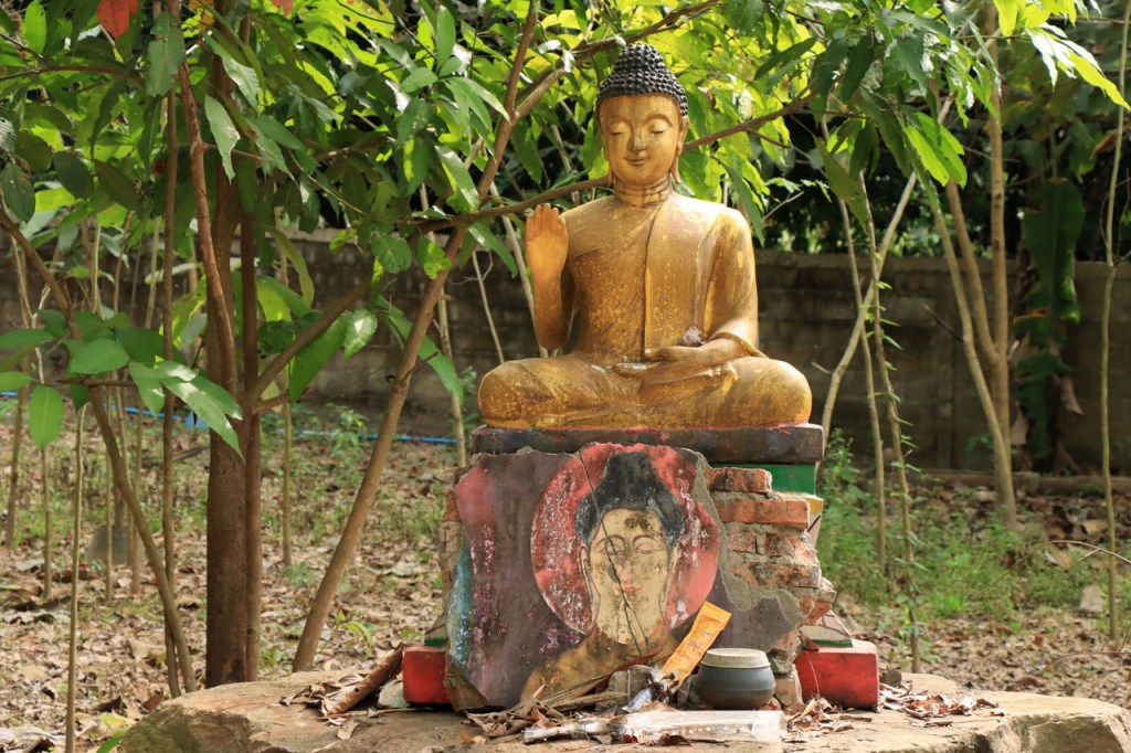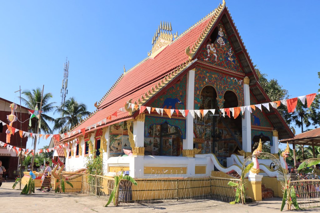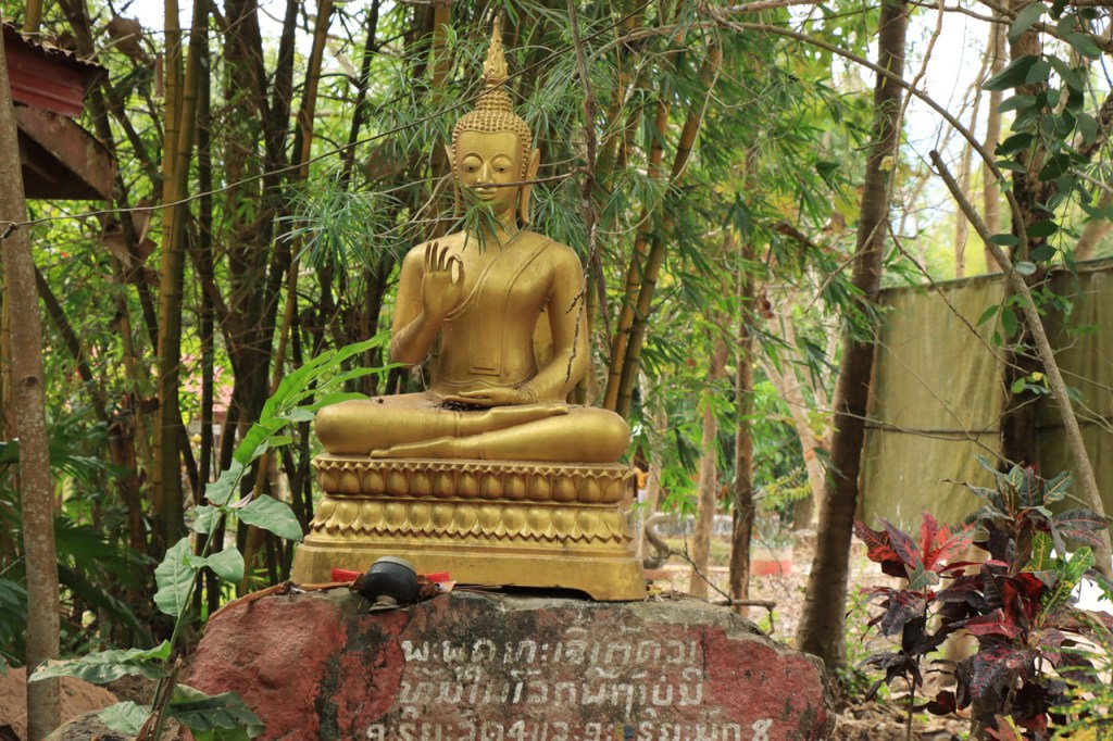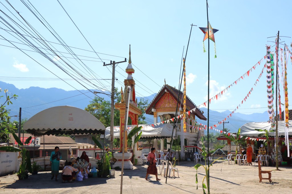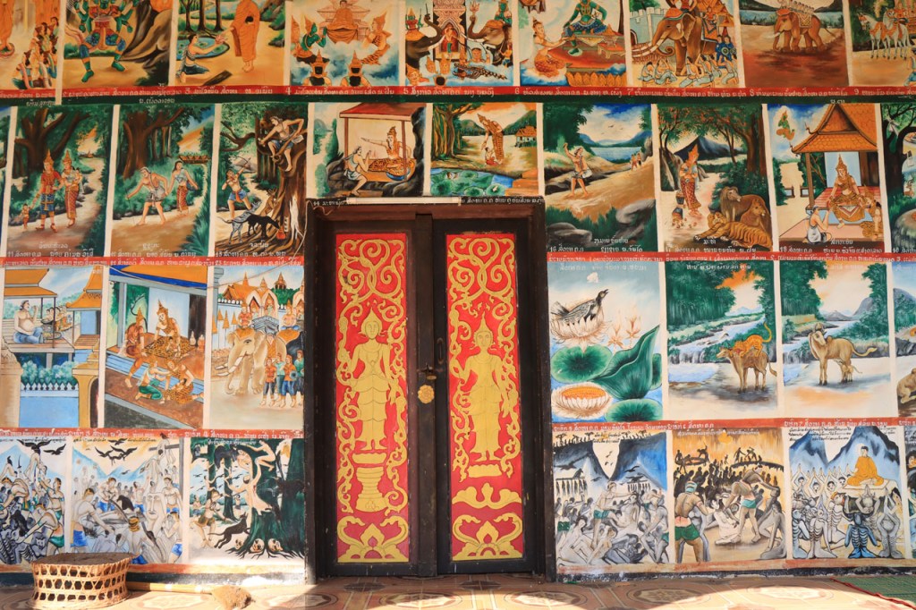 Ik zal het hier dus rustig houden maar je moet wel iets doen natuurlijk. Deze voormiddag, terwijl het nog wat koeler was, wandelde ik langs de Avenue Lanexang, met aan het ene uiteinde Patuxai en aan de andere kant Wat Si Saket. Patuxai is de Arc de Triomphe van Vientiane, een beetje ironisch gewijd aan de triomf over de Fransen die die andere grote Arc hebben die een beetje model stond voor deze. Ze maakten er wel een versie van met typische lokale architectuur. De Arc is gemaakt van beton dat de Amerikanen schonken om een luchthaven aan te leggen, de Lao bleken de voorkeur te geven aan een triomfboog. Wat Si Saket is nu een museum waar rond een oude tempel, de oudste van Vientiane, tientallen oude boeddha’s opgesteld staan en verder in nissen in de muur nog eens honderden kleine beeldjes. Ook in de muren in de tempel zijn er nog nissen met honderden kleine boeddha’s. Jammer genoeg mag je in de tempel niet fotograferen, vooral de resten van de oude muurtekeningen zijn interessant. Om een tempel te betreden moet je altijd je schoenen uitdoen, de organisatie kan niet verantwoordelijk gesteld worden voor eventuele schade 🙂 . Tussen de twee uiteinden passeerde ik ook nog langs Wat That Phoun, een moderner tempelcomplex.