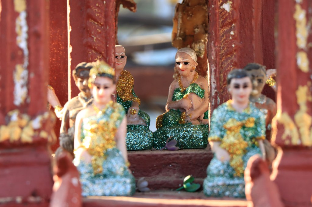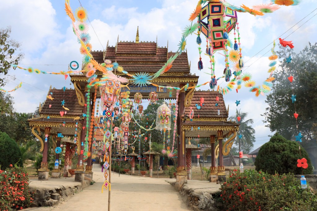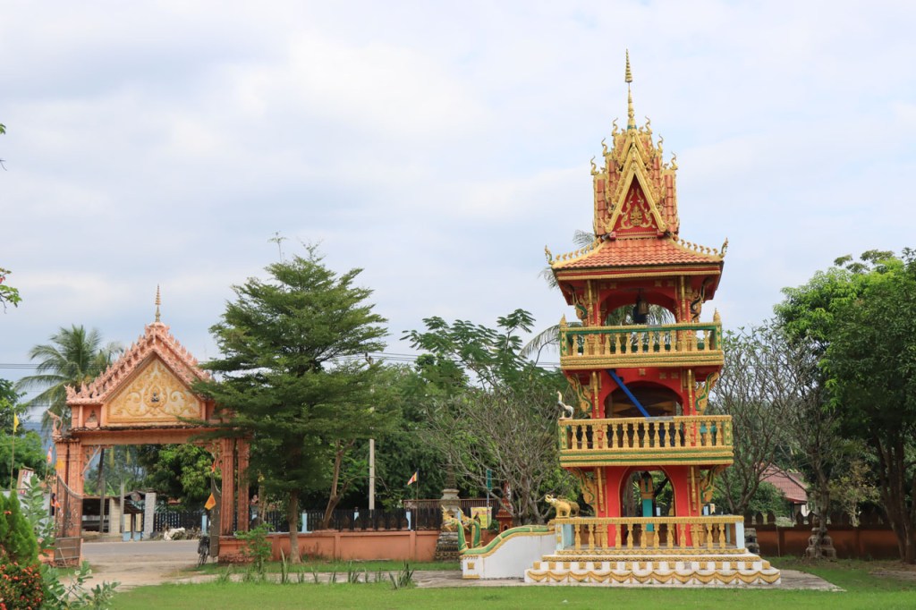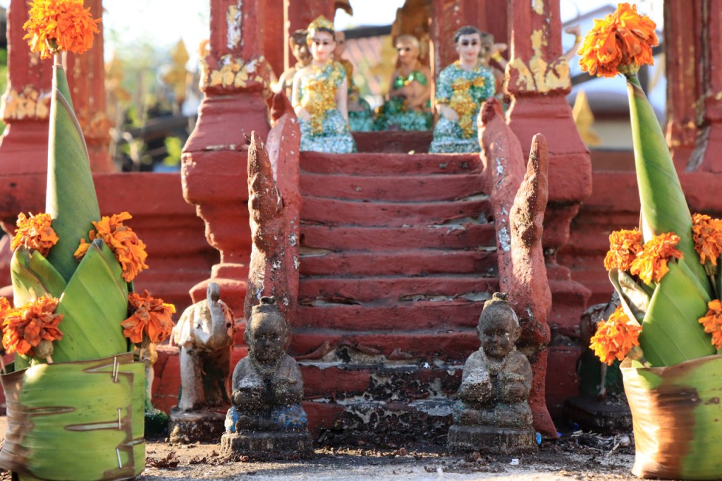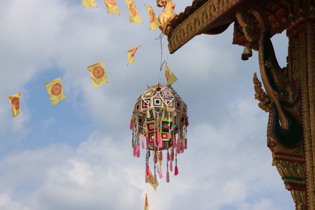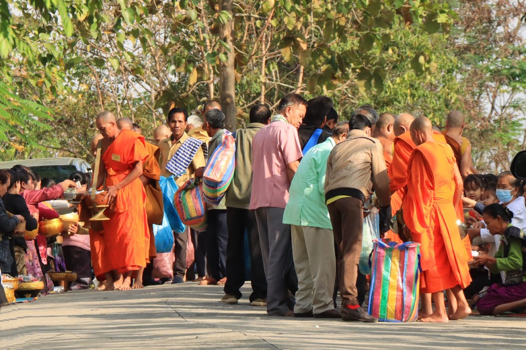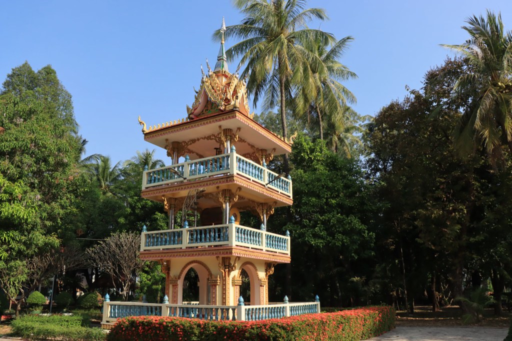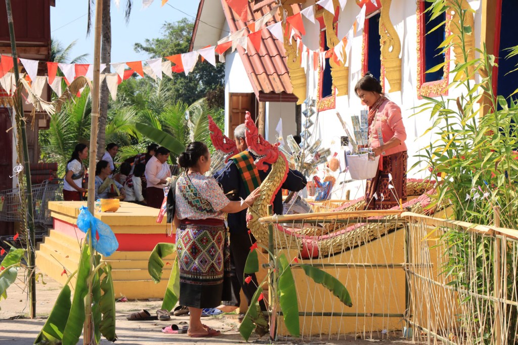 Ik zal het hier dus rustig houden maar je moet wel iets doen natuurlijk. Deze voormiddag, terwijl het nog wat koeler was, wandelde ik langs de Avenue Lanexang, met aan het ene uiteinde Patuxai en aan de andere kant Wat Si Saket. Patuxai is de Arc de Triomphe van Vientiane, een beetje ironisch gewijd aan de triomf over de Fransen die die andere grote Arc hebben die een beetje model stond voor deze. Ze maakten er wel een versie van met typische lokale architectuur. De Arc is gemaakt van beton dat de Amerikanen schonken om een luchthaven aan te leggen, de Lao bleken de voorkeur te geven aan een triomfboog. Wat Si Saket is nu een museum waar rond een oude tempel, de oudste van Vientiane, tientallen oude boeddha’s opgesteld staan en verder in nissen in de muur nog eens honderden kleine beeldjes. Ook in de muren in de tempel zijn er nog nissen met honderden kleine boeddha’s. Jammer genoeg mag je in de tempel niet fotograferen, vooral de resten van de oude muurtekeningen zijn interessant. Om een tempel te betreden moet je altijd je schoenen uitdoen, de organisatie kan niet verantwoordelijk gesteld worden voor eventuele schade 🙂 . Tussen de twee uiteinden passeerde ik ook nog langs Wat That Phoun, een moderner tempelcomplex.