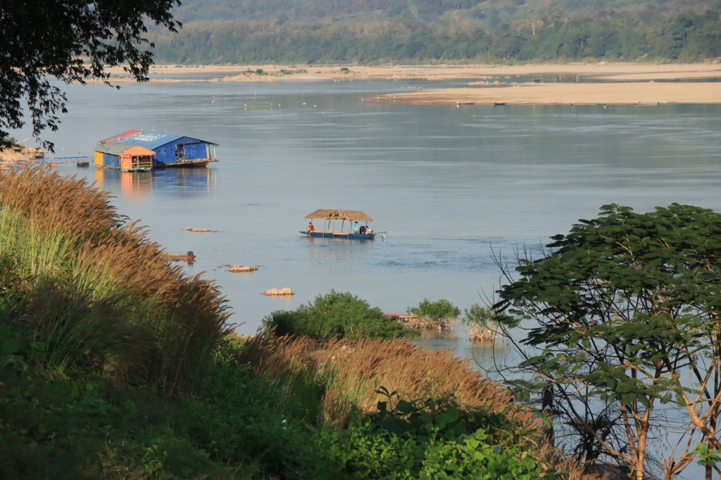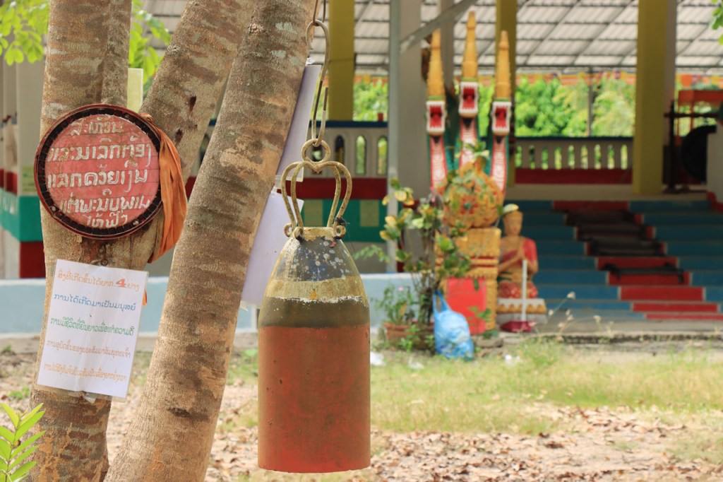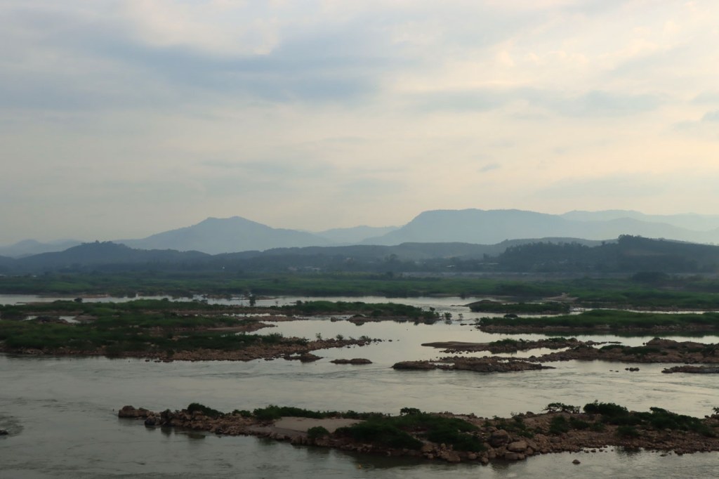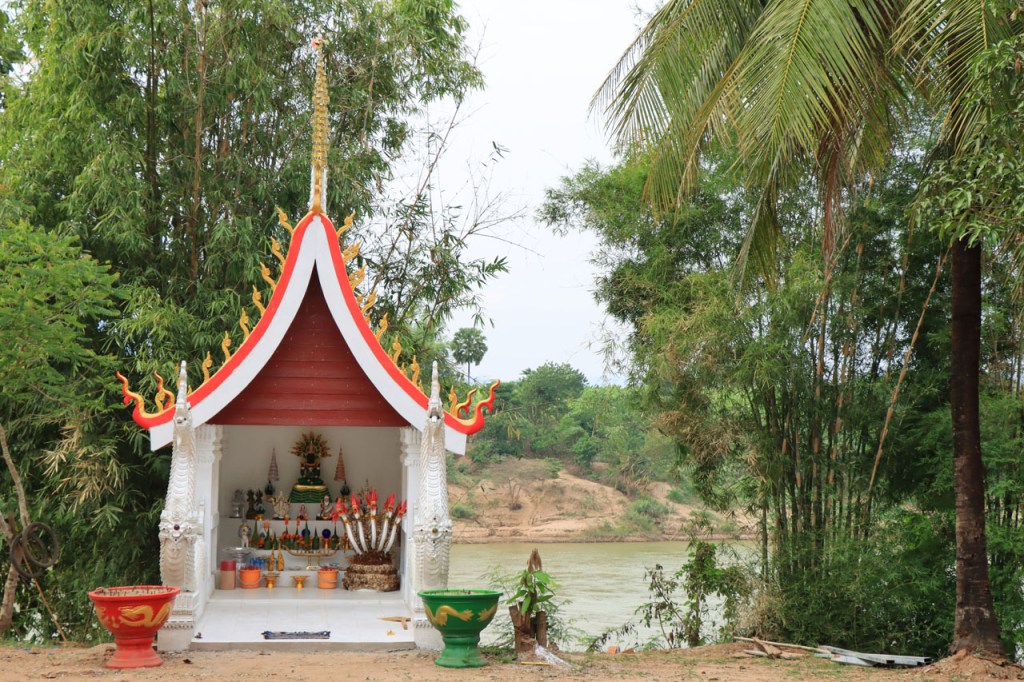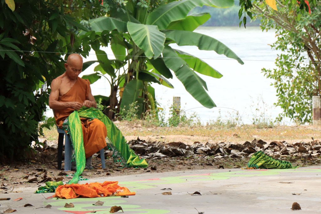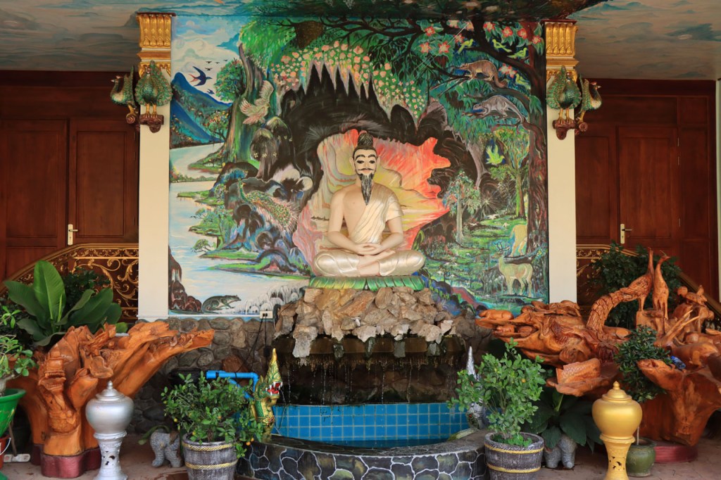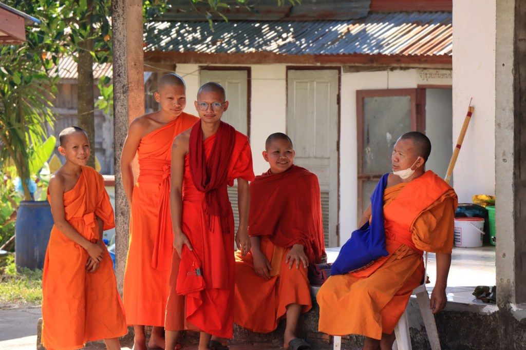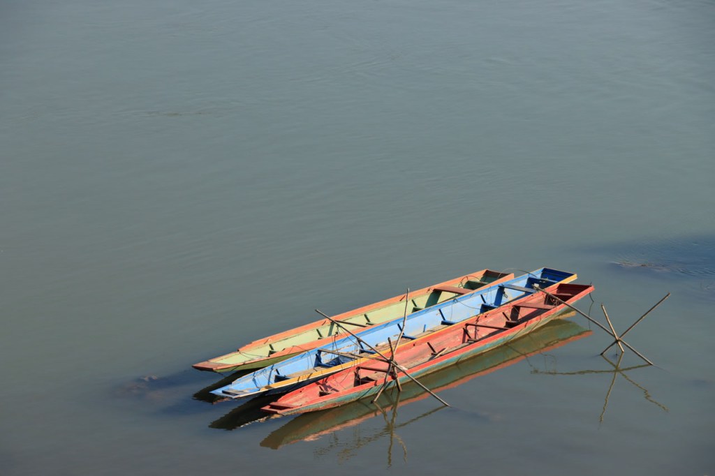 Ik zal het hier dus rustig houden maar je moet wel iets doen natuurlijk. Deze voormiddag, terwijl het nog wat koeler was, wandelde ik langs de Avenue Lanexang, met aan het ene uiteinde Patuxai en aan de andere kant Wat Si Saket. Patuxai is de Arc de Triomphe van Vientiane, een beetje ironisch gewijd aan de triomf over de Fransen die die andere grote Arc hebben die een beetje model stond voor deze. Ze maakten er wel een versie van met typische lokale architectuur. De Arc is gemaakt van beton dat de Amerikanen schonken om een luchthaven aan te leggen, de Lao bleken de voorkeur te geven aan een triomfboog. Wat Si Saket is nu een museum waar rond een oude tempel, de oudste van Vientiane, tientallen oude boeddha’s opgesteld staan en verder in nissen in de muur nog eens honderden kleine beeldjes. Ook in de muren in de tempel zijn er nog nissen met honderden kleine boeddha’s. Jammer genoeg mag je in de tempel niet fotograferen, vooral de resten van de oude muurtekeningen zijn interessant. Om een tempel te betreden moet je altijd je schoenen uitdoen, de organisatie kan niet verantwoordelijk gesteld worden voor eventuele schade 🙂 . Tussen de twee uiteinden passeerde ik ook nog langs Wat That Phoun, een moderner tempelcomplex.