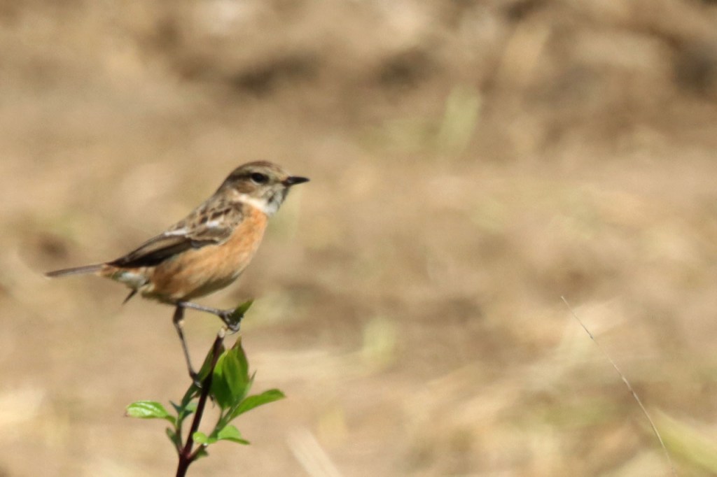 Ik trof ook een tapuit, mijn eerste ooit geloof ik. Ik zie wel vaker roodborsttapuiten maar voor zover ik kan vinden is er geen “familieverband”. Het betrof waarschijnlijk een doortrekker. Als broedvogel staan ze in België op de rode lijst als ernstig bedreigd maar ze zouden in april en mei wel vaker te zien zijn op hun trek van het diepe zuiden naar het hoge noorden.